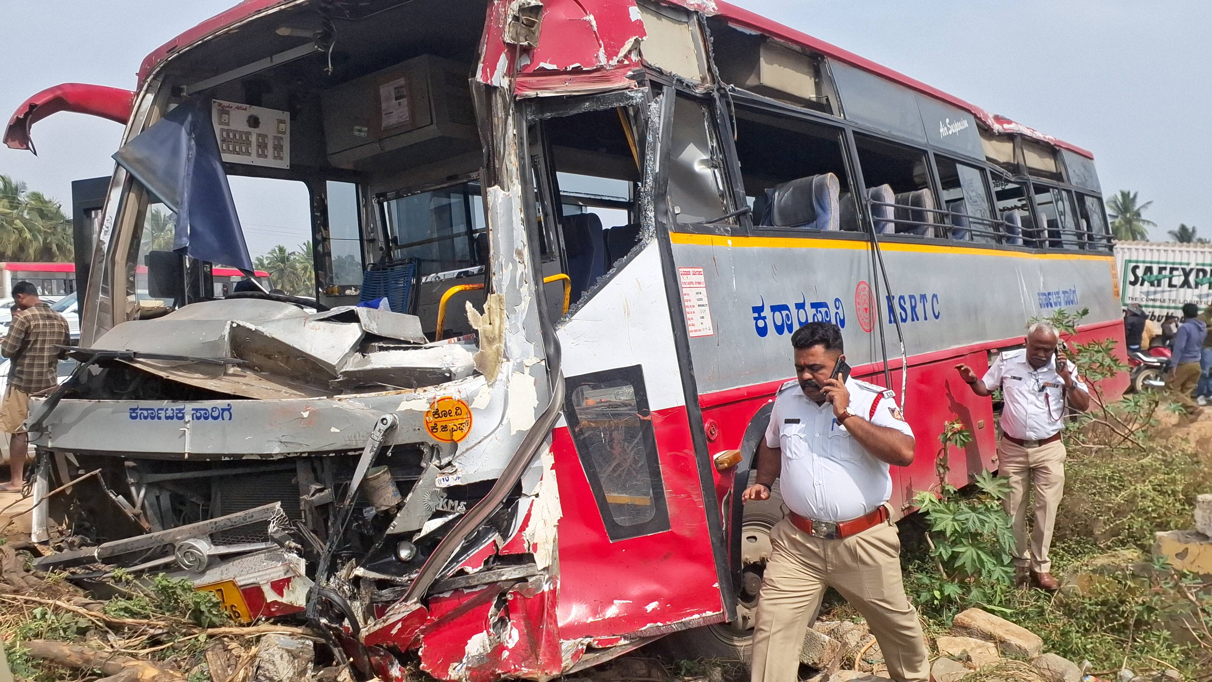 ಬೆಂಗಳೂರಿನಿಂದ ಕೋಲಾರಕ್ಕೆ ತೆರಳುತ್ತಿದ್ದ ಕೆಎಸ್ಆರ್ಟಿಸಿ ಬಸ್ ಎಂವಿಜೆ ಆಸ್ಪತ್ರೆ ಮುಂದೆ ಮುಂದಿನ ವಾಹನಕ್ಕೆ ಡಿಕ್ಕಿ ಆಗುವುದನ್ನು ತಪ್ಪಿಸಲು ಹೋಗಿ ಚಾಲಕ ರಸ್ತೆ ವಿಭಜಕವನ್ನು ದಾಟಿ ಎದುರುರಸ್ತೆಗೆ ಹೋದದ್ದರಿಂದ ಎದುರಗಡೆಯಿಂದ ಬಂದ ಕ್ಯಾಂಟರ್ ವಾಹನಕ್ಕೆ ಡಿಕ್ಕಿ ಹೊಡೆದಿದೆ.