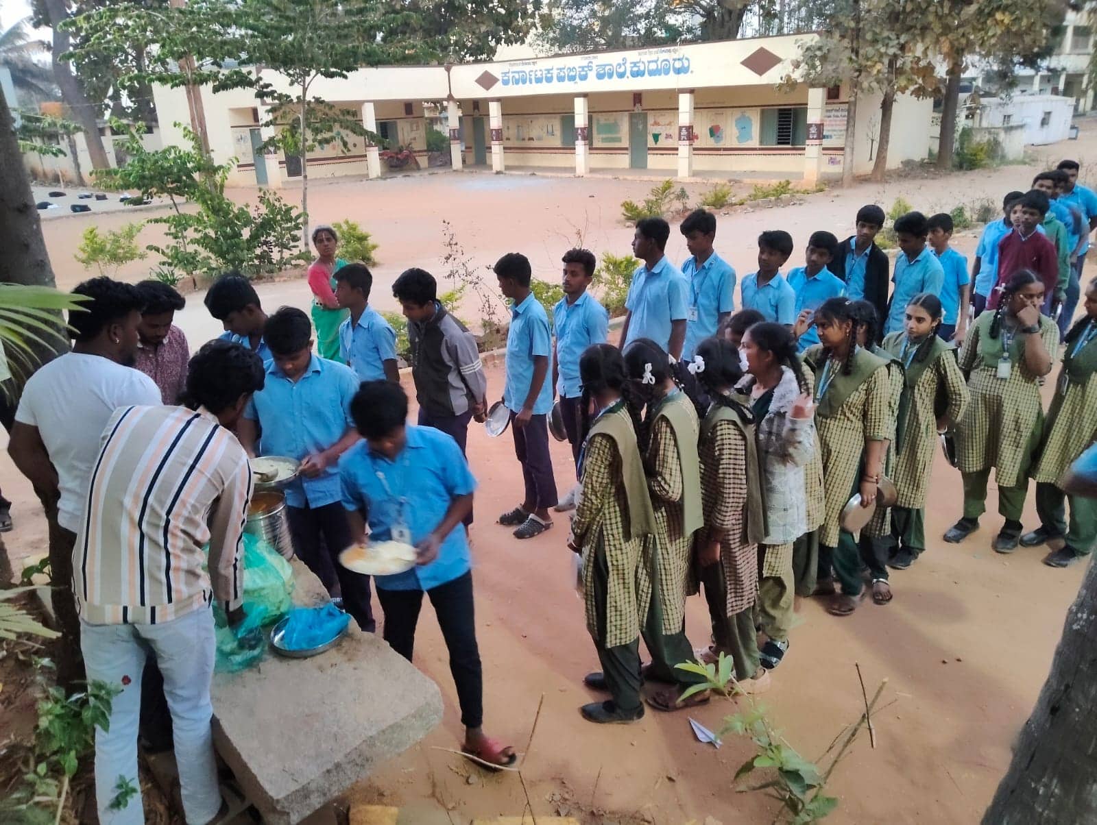 ಮಕ್ಕಳಿಗೆ ಸಂಜೆ ವೇಳೆ ಊಟ ಅಥವಾ ಲಘು ಉಪಹಾರದ ವ್ಯವಸ್ಥೆ ಆಗಬೇಕು ಎಂದು ಹಳೇ ವಿದ್ಯಾರ್ಥಿಗಳಿಗೆ ಉಪಪ್ರಾಂಶುಪಾಲೆ ಶ್ರೀದೇವಿಯವರು ಮನವಿ ಮಾಡಿದ್ದಕ್ಕೆ ಸ್ಪಂದಿಸಿದ ವಿದ್ಯಾರ್ಥಿಗಳು ನಿತ್ಯವೂ ಒಬ್ಬೊಬ್ಬರಂತೆ ವಿವಿಧ ತಿಂಡಿ, ಊಟ ಕೊಟ್ಟು ಉತ್ತಮ ಫಲಿತಾಂಶ ಬರಲು ಸಹಕರಿಸುತ್ತಿದ್ದಾರೆ. ಶಾಲೆಗೆ ಊರಿಗೆ ತಂದೆ ತಾಯಿಗಳಿಗೆ ಒಳ್ಳೆಯ ಹೆಸರು ತರಬೇಕು ಎಂದು ಮಕ್ಕಳಿಗೆ ಕಿವಿಮಾತು ಹೇಳಿ ಊಟ ಬಡಿಸುತ್ತಾರೆ.