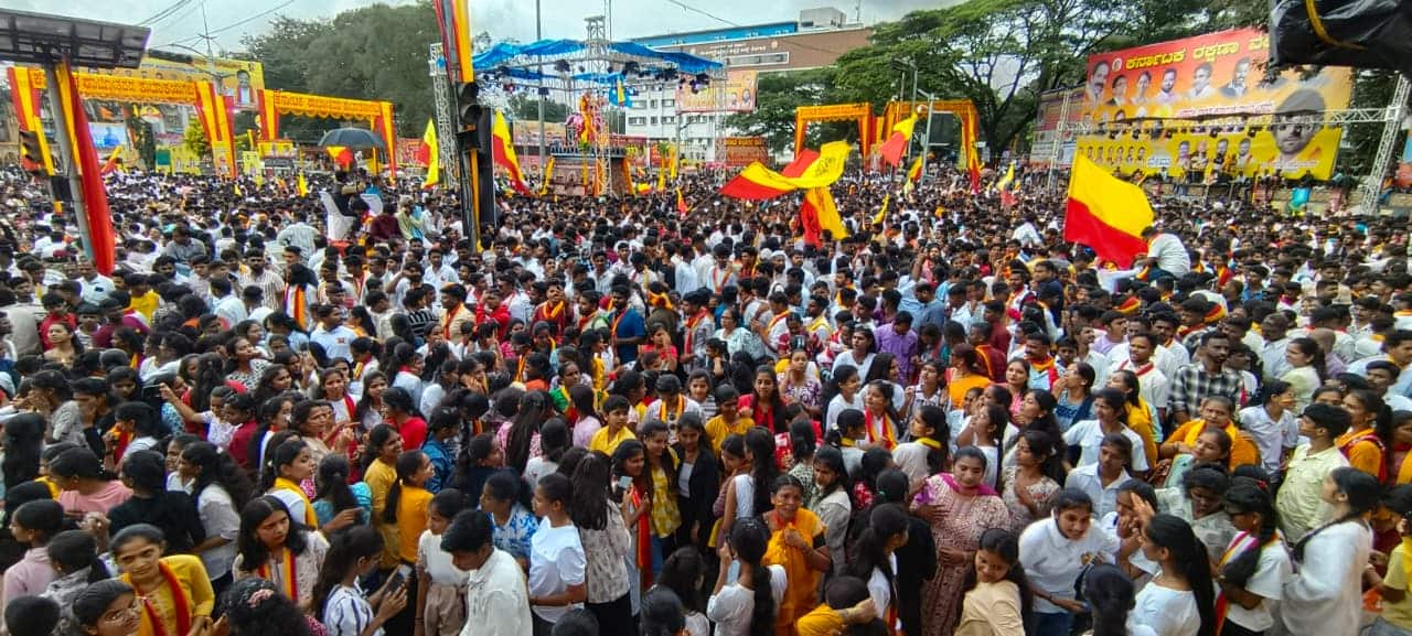 ಎಲ್ಲಿ ನೋಡಿದರಲ್ಲಿ ಹಳದಿ, ಕೆಂಪು ಬಣ್ಣಗಳ ಚಿತ್ತಾರ. ಕನ್ನಡ ಬಾವುಟಗಳ ಹಾರಾಟ. ಕನ್ನಡಕ್ಕಾಗಿ ಮಿಡಿಯುವ ಹೃದಯಗಳು ಅಲ್ಲಿ ಒಟ್ಟಾಗಿ ಸೇರಿದ್ದವು. ಕನ್ನಡದ ಹಾಡುಗಳಿಗೆ ಅಲ್ಲಿ ಹೆಜ್ಜೆ ಹಾಕುವವರ ಸಂಖ್ಯೆ ಸಾವಿರಾರು ಸಂಖ್ಯೆಯಲ್ಲಿದ್ದವು. ಎತ್ತ ನೋಡಿದರೂ ಕನ್ನಡದ ಹಬ್ಬದ ಕಲರವ....ಇದು 70ನೇ ಕರ್ನಾಟಕ ರಾಜ್ಯೋತ್ಸವ ಅಂಗವಾಗಿ ಗಡಿ ಜಿಲ್ಲೆ, ಕುಂದಾನಗರಿ ಬೆಳಗಾವಿಯಲ್ಲಿ ಮೊಳಗಿದ ಕನ್ನಡದ ಡಿಂಡಿಮ. ಸಾವಿರಾರು ಕನ್ನಡಿಗರು ಒಂದೇ ಕಡೆ ಸೇರುವ ಮೂಲಕ ಬೆಳಗಾವಿ ಕರ್ನಾಟಕ ರಾಜ್ಯೋತ್ಸವ ಮತ್ತೆ ಹೊಸ ಇತಿಹಾಸ ಬರೆಯಿತು. ಕನ್ನಡ ಹಾಡುಗಳಿಗೆ ಯುವಕ-ಯುವತಿಯರು ಹುಚ್ಚೆದ್ದು ಕುಣಿದರು. ಇಡೀ ಬೆಳಗಾವಿ ಕನ್ನಡಮಯ ಆಗಿತ್ತು.ಬೆಳಗಾವಿಯ ರಾಣಿ ಚನ್ನಮ್ಮ ವೃತ್ತದಲ್ಲಿ ಶನಿವಾರ ಕಂಡುಬಂದ ರಾಜ್ಯೋತ್ಸವ ಸಡಗರದ ಪ್ರತಿ ವರ್ಷದಂತೆ ಈ ಬಾರಿಯೂ ಲಕ್ಷ ಲಕ್ಷ ಸಂಖ್ಯೆಯಲ್ಲಿ ಸೇರಿದ ಕನ್ನಡಿಗರು ಇನ್ನಿಲ್ಲದಂತೆ ಸಂಭ್ರಮಿಸಿದರು. ಗಡಿಯಲ್ಲಿ ನಾಡದೇವಿ ಭುವನೇಶ್ವರಿಯ ವೈಭವ ಮರುಕಳಿಸುವಂತೆ ಮಾಡಿದರು. ಜಿಲ್ಲಾ ಉಸ್ತುವಾರಿ ಸಚಿವ ಸತೀಶ ಜಾರಕಿಹೊಳಿ ರಾಣಿ ಚನ್ನಮ್ಮ ಪ್ರತಿಮೆಗೆ ಮಾಲಾರ್ಪಣೆ ಮಾಡುವ ಮೂಲಕ ಉತ್ಸವಕ್ಕೆ ಚಾಲನೆ ನೀಡಿದರು.ತಂಡೋಪ ತಂಡವಾಗಿ ಆಗಮಿಸಿದ ಯುವಕ, ಯುವತಿಯರು, ಮಹಿಳೆಯರು, ಮಕ್ಕಳು, ಹಿರಿಯರು ಐತಿಹಾಸಿಕ ಉತ್ಸವಕ್ಕೆ ಸಾಕ್ಷಿಯಾದರು. ಶುಕ್ರವಾರ ತಡರಾತ್ರಿಯೇ ಆರಂಭವಾದ ರಾಜ್ಯೋತ್ಸವ ಸಂಭ್ರಮ ಶನಿವಾರ ಇಡೀ ದಿನ ಮುಂದುವರಿಯಿತು. ರಾಣಿ ಚನ್ನಮ್ಮ ವೃತ್ತದಲ್ಲಿ ಜೈಕಾರಗಳು ಮುಗಿಲು ಮುಟ್ಟಿದವು. ಕಣ್ಣು ಕಂಡಷ್ಟೂ ದೂರ ಕನ್ನಡ ಬಾವುಟಗಳ ಹಾರಾಟವೇ ಗೋಚರಿಸಿತು. ಎಲ್ಲೆಲ್ಲೂ ಕನ್ನಡ ಝೇಂಕಾರ ಮೊಳಗಿತು. ಕೆಂಪು- ಹಳದಿ ಬಣ್ಣದ ದಿರಿಸು ಧರಿಸಿ ಬಂದ ಹಲವರು ಕನ್ನಡ ಧ್ವಜವನ್ನು ಪ್ರತಿನಿಧಿಸುವಂತೆ ಕಂಡರು.
