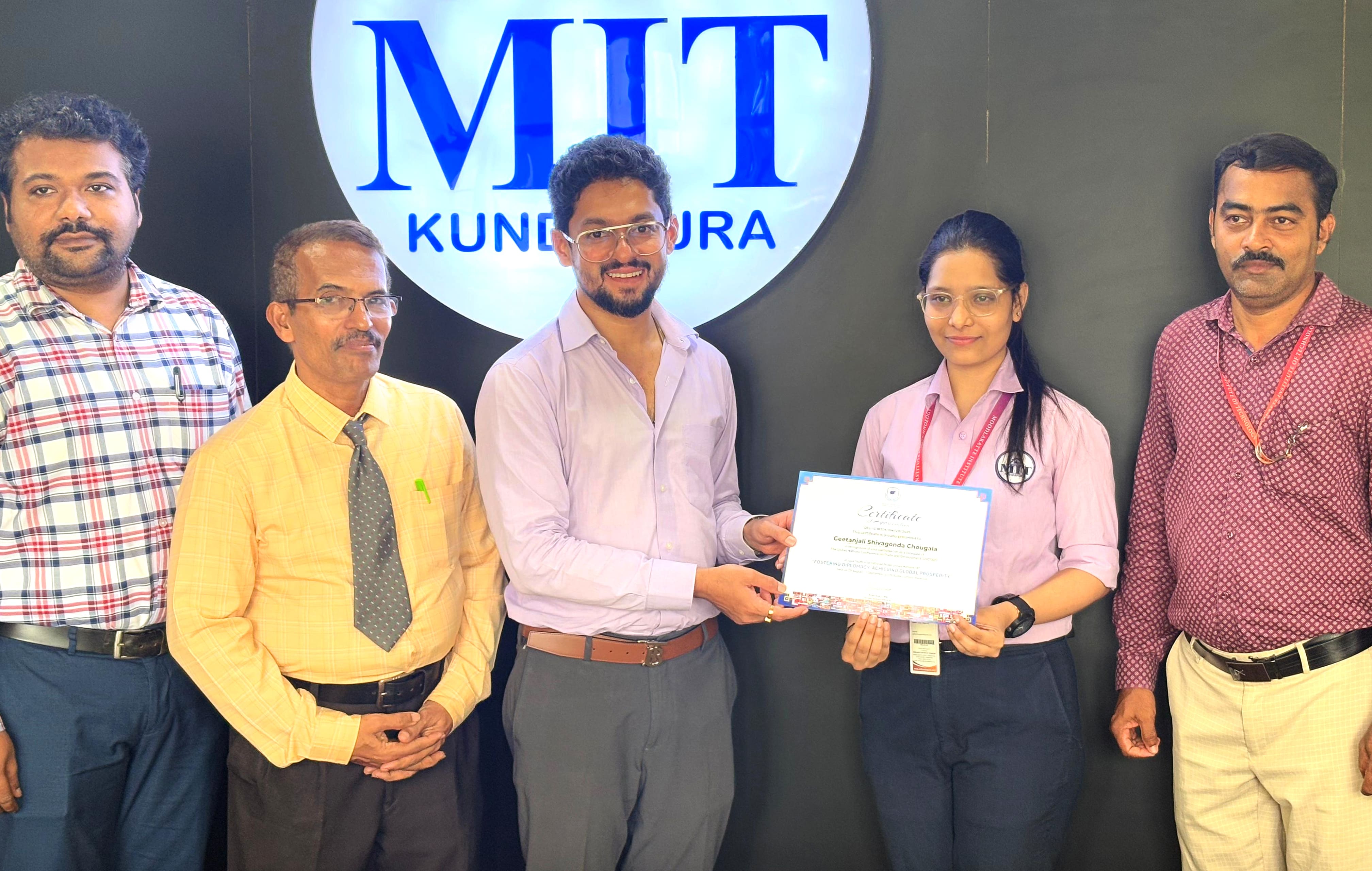 ಇಲ್ಲಿನ ಮೂಡ್ಲಕಟ್ಟೆ ಇನ್ಸ್ಟಿಟ್ಯೂಟ್ ಆಫ್ ಟೆಕ್ನಾಲಜಿ (ಎಂಐಟಿಕೆ) ವಿದ್ಯಾರ್ಥಿನಿ ಗೀತಾಂಜಲಿ ಶಿವಗೊಂಡ ಚೌಗಲಾ ಅವರು ಮಲೇಷ್ಯಾದ ಕೌಲಾಲಂಪುರದಲ್ಲಿ ನಡೆದ ಅತಿ ದೊಡ್ಡ ಯುವ ನಾಯಕತ್ವ ಸಮ್ಮೇಳನಗಳಲ್ಲಿ ಒಂದಾದ ಎವೈಎಂಯುಎನ್ - 2025ರಲ್ಲಿ ಭಾರತವನ್ನು ಪ್ರತಿನಿಧಿಸಿ