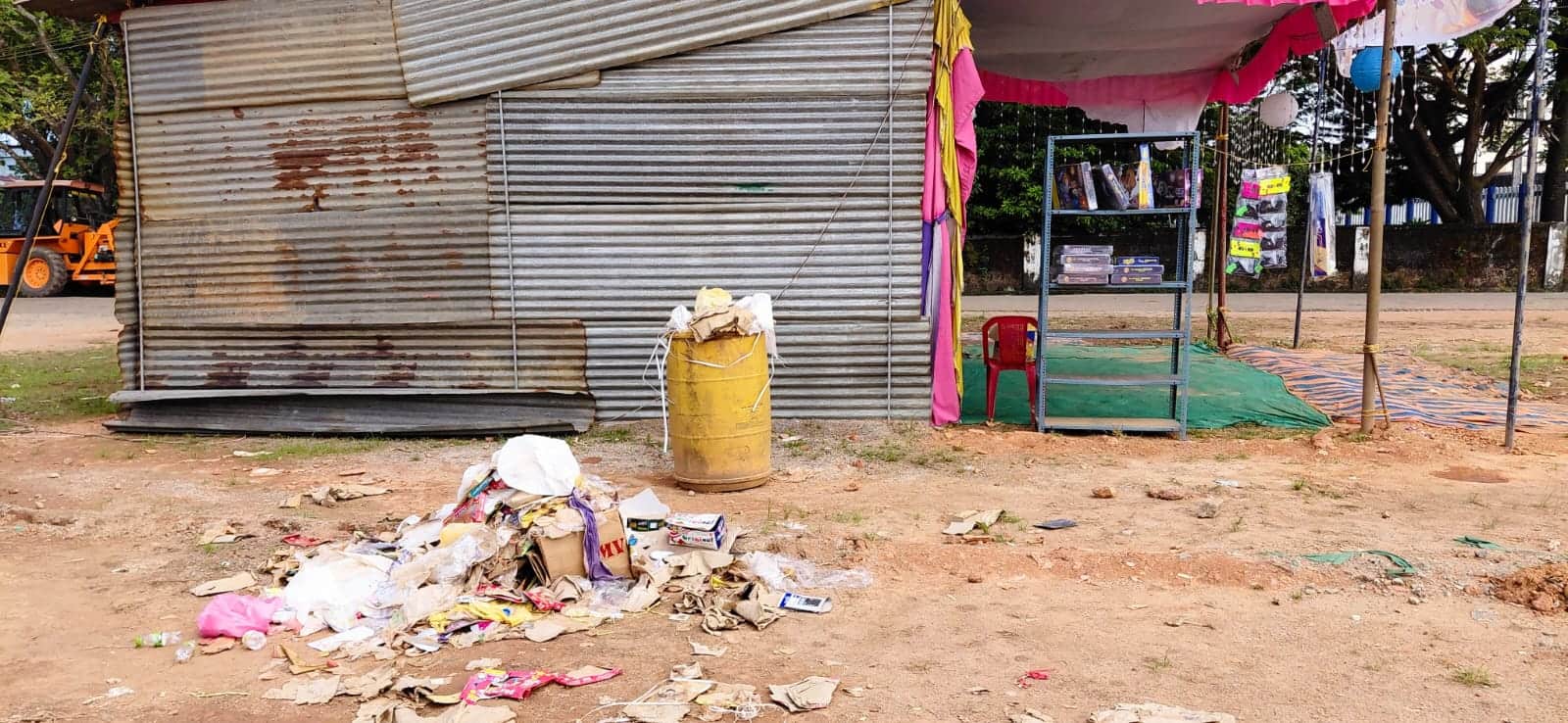 ದೀಪಾವಳಿ ಹಾಗೂ ತುಳಸಿ ಹಬ್ಬದ ಸಂಭ್ರಮಕ್ಕಾಗಿ ಇಲ್ಲಿನ ನೆಹರೂ ಮೈದಾನದಲ್ಲಿ ಹಾಕಿರುವ ಪಟಾಕಿ ಅಂಗಡಿಗಳಿಂದ ರಾಶಿ ಬಿದ್ದಿರುವ ತ್ಯಾಜ್ಯಗಳು ವಿಲೇವಾರಿ ಆಗದಿರುವ ಕುರಿತು ಸ್ಥಳೀಯರು ಆಕ್ರೋಶ ವ್ಯಕ್ತಪಡಿಸಿದ್ದಾರೆ.