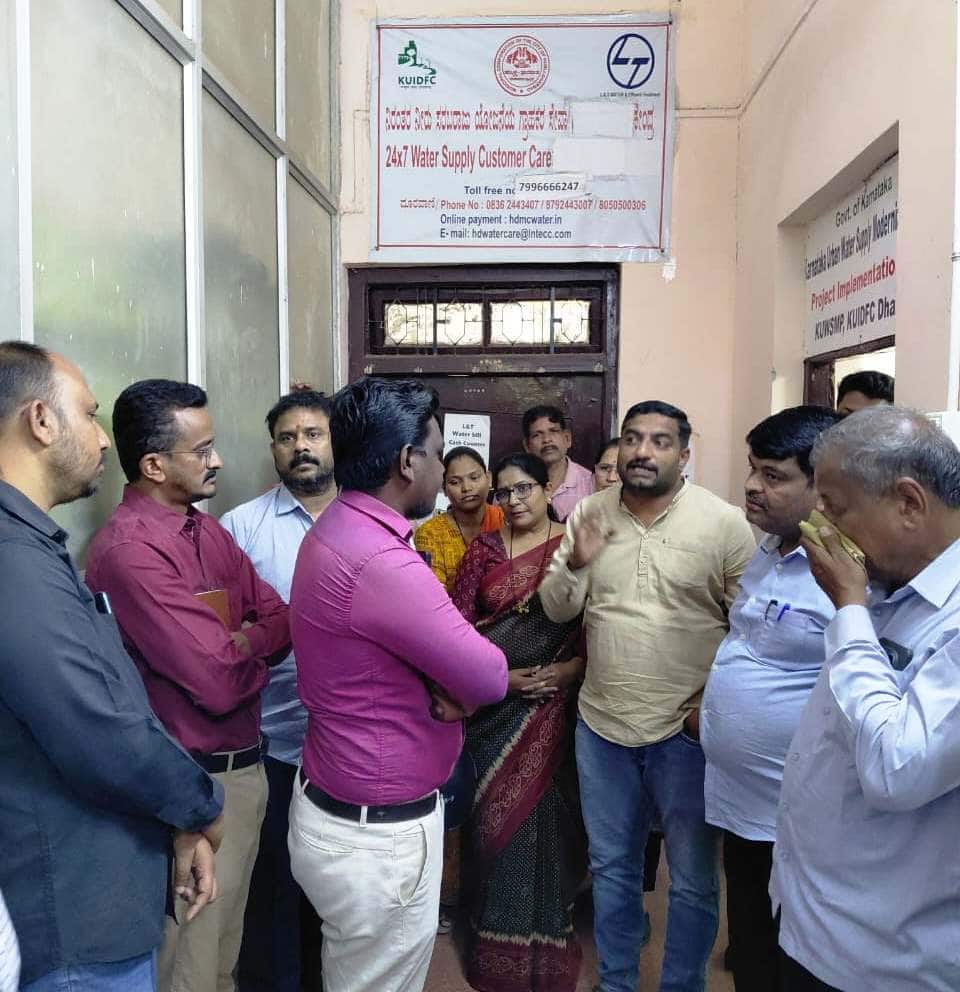 ಮಹಾನಗರ ಪಾಲಿಕೆಯ ವಾರ್ಡ್ 1ರಲ್ಲಿ ಸಮರ್ಪಕ ಕುಡಿಯುವ ನೀರಿಗಾಗಿ ಪಾಲಿಕೆಯಲ್ಲಿರುವ ಎಲ್ ಆ್ಯಂಡ್ ಟಿ ಹಾಗೂ ಕೆಯುಐಡಿಎಫ್ಸಿ ಕಚೇರಿಗೆ ಮುತ್ತಿಗೆ ಹಾಕಿ ನಾಗರಿಕರು ಪ್ರತಿಭಟನೆ ಮಾಡಿದರು.ವಾರ್ಡ್ 1ರ ಕುಮಾರೇಶ್ವರನಗರ ಹಾಗೂ ಸುತ್ತಲಿನ ಎಲ್ಲ ಬಡಾವಣೆಗಳಲ್ಲಿ ಕುಡಿಯುವ ನೀರಿನ ಸಮಸ್ಯೆ ತೀವ್ರವಾಗಿ ಉಲ್ಬಣಿಸಿದೆ. ಸಾಕಷ್ಟು ಬಾರಿ ಸಂಬಂಧಿಸಿದ ಅಧಿಕಾರಿಗಳ ಗಮನಕ್ಕೆ ತಂದಿದ್ದರೂ ಕೂಡ ಸಮರ್ಪಕವಾಗಿ ಕುಡಿಯುವ ನೀರು ಸರಬರಾಜು ಮಾಡುವಲ್ಲಿ ವಿಫಲರಾಗಿದ್ದಾರೆ. ಈ ಮೊದಲು ಐದು ದಿನಗಳಿಗೊಮ್ಮೆ ನೀರು ಬರುತ್ತಿತ್ತು, ಆದರೆ ಈಗ 8-10 ದಿನಗಳಿಗೊಮ್ಮೆ ನೀರು ಬರುತ್ತಿದೆ. ಅದು ಕೂಡ ಸಮರ್ಪಕವಾಗಿ ಬರುತ್ತಿಲ್ಲ. ಕುಡಿಯುವ ನೀರಿಗಾಗಿ ವಾಟರ್ ಕ್ಯಾನ್ಗಳಿಗೆ ಜನರು ಮೊರೆ ಹೋಗಬೇಕಾಗಿದೆ ಎಂದು ಆಕ್ರೋಶ ವ್ಯಕ್ತಪಡಿಸಿದರು.