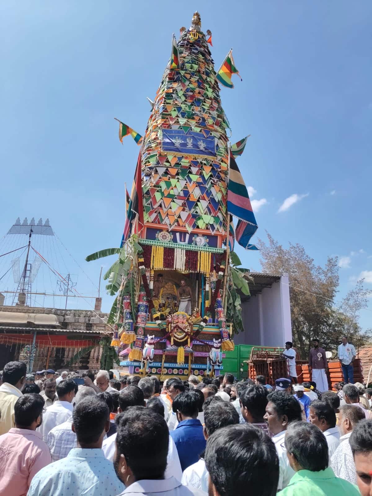 ರಥ ಸಾಗುವ ಮುಂದೆ ಗಾರುಡಿ ಗೊಂಬೆ ಕುಣಿತ, ಗೊರವರ ಕುಣಿತ, ಕಂಸಾಳೆ ಕುಣಿತದ ಜತೆಗೆ ಮಂಗಳವಾದ್ಯ ಮೊಳಗುತ್ತಿದ್ದರೆ ಭಕ್ತರು ತೇರಿನ ಮುಂದೆ ನಡೆದುಕೊಂಡು ಜೈಕಾರ ಹಾಕಿದರು, ಗ್ರಾಮದ ನೂರಾರು ಮಂದಿ ಯುವಕರು ಮಾತ್ರ ಕುಣಿದು ಕುಪ್ಪಳಿಸಿದರು.