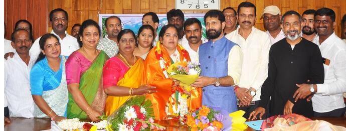 30 ಕೆಸಿಕೆಎಂ 2ಚಿಕ್ಕಮಗಳೂರು ನಗರಸಭೆ ನೂತನ ಉಪಾಧ್ಯಕ್ಷರಾಗಿ ಶನಿವಾರ ಅವಿರೋಧವಾಗಿ ಆಯ್ಕೆಯಾದ ಲಲಿತಾ ರವಿನಾಯ್ಕರಿಗೆ ವಿಧಾನಪರಿಷತ್ ಸದಸ್ಯ ಸಿ.ಟಿ. ರವಿ, ನಗರಸಭೆ ಅಧ್ಯಕ್ಷೆ ಶೀಲಾ ದಿನೇಶ್ , ನಗರಸಭೆ ಸದಸ್ಯರು ಅಭಿನಂದಿಸಿದರು.