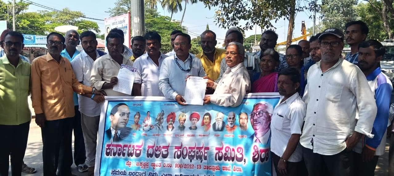 ಸವೋಚ್ಚ ನ್ಯಾಯಾಲಯದ ಮುಖ್ಯ ನ್ಯಾಯಾಧೀಶರರಾದ ಬಿ.ಆರ್.ಗವಾಯಿ ರವರ ಮೇಲೆ ವಕೀಲರೊಬ್ಬರು ಶೂ ಎಸೆಯಲು ಪ್ರಯತ್ನಿಸಿದ್ದ ಪ್ರಕರಣವನ್ನು ಖಂಡಿಸಿ ಕರ್ನಾಟಕ ದಲಿತ ಸಂಘರ್ಷ ಸಮಿತಿ ಹಾಗೂ ಶಿರಾ ಸಾಮಾಜಿಕ ಜಾಗೃತಿ ಒಕ್ಕೂಟ ವತಿಯಿಂದ ಗುರುವಾರ ಪ್ರತಿಭಟನೆ ನಡೆಸಲಾಯಿತು.