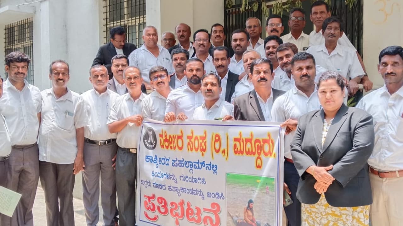 ಕಾಶ್ಮೀರದ ಪಹಲ್ಗಾಮ್ ನಲ್ಲಿ ಭಯೋತ್ಪಾದಕರಿಂದ ಮುಗ್ಧ ಹಿಂದುಗಳ ಹತ್ಯೆ ಖಂಡಿಸಿ ಪಟ್ಟಣದ ವಕೀಲರು ಗುರುವಾರ ನ್ಯಾಯಾಲಯದ ಕಲಾಪ ಬಹಿಷ್ಕರಿಸಿ ಪ್ರತಿಭಟನೆ ನಡೆಸಿದರು.ವಕೀಲರ ಸಂಘದ ಉಪಾಧ್ಯಕ್ಷ ಪುಟ್ಟರಾಜು ಹಾಗೂ ಪ್ರಧಾನ ಕಾರ್ಯದರ್ಶಿ ಸುಮಂತ್ ನೇತೃತ್ವದಲ್ಲಿ ಸಭೆ ನಡೆಸಿದ ವಕೀಲರು ಭಯೋತ್ಪಾದಕ ದಾಳಿಗೆ ಬಲಿಯಾದ ಹಿಂದೂಗಳಿಗೆ ಶ್ರದ್ಧಾಂಜಲಿ ಸಲ್ಲಿಸಿದರು. ಬಳಿಕ ನ್ಯಾಯಾಲಯದ ಕಲಾಪದಿಂದ ದೂರ ಉಳಿಯಲು ನಿರ್ಣಯ ಅಂಗೀಕರಿಸಿದರು.
