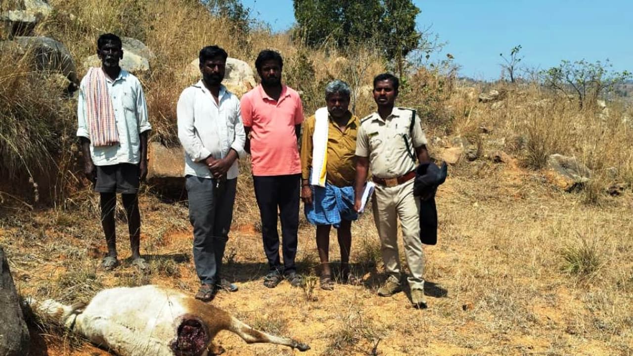 ಸ್ಥಳೀಯ ನಿವಾಸಿ ಚಿರಂಜೀವಿ ಎಂಬುವವರಿಗೆ ಸೇರಿದ ಕರುಗಳನ್ನು ಬೆಟ್ಟದ ತಪ್ಪಲಿನಲ್ಲಿ ಮೇಯಿಸಲು ಬಿಡಲಾಗಿತ್ತು. ಈ ವೇಳೆ ಹಠಾತ್ತನೆ ದಾಳಿ ಮಾಡಿದ ಚಿರತೆ, ಎರಡು ಕರುಗಳ ಕುತ್ತಿಗೆಯನ್ನು ಕಚ್ಚಿ ಕೊಂದಿದೆ.