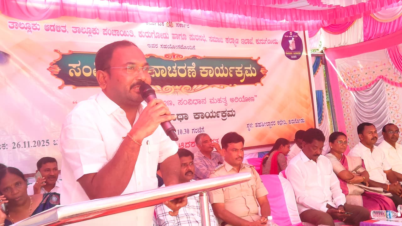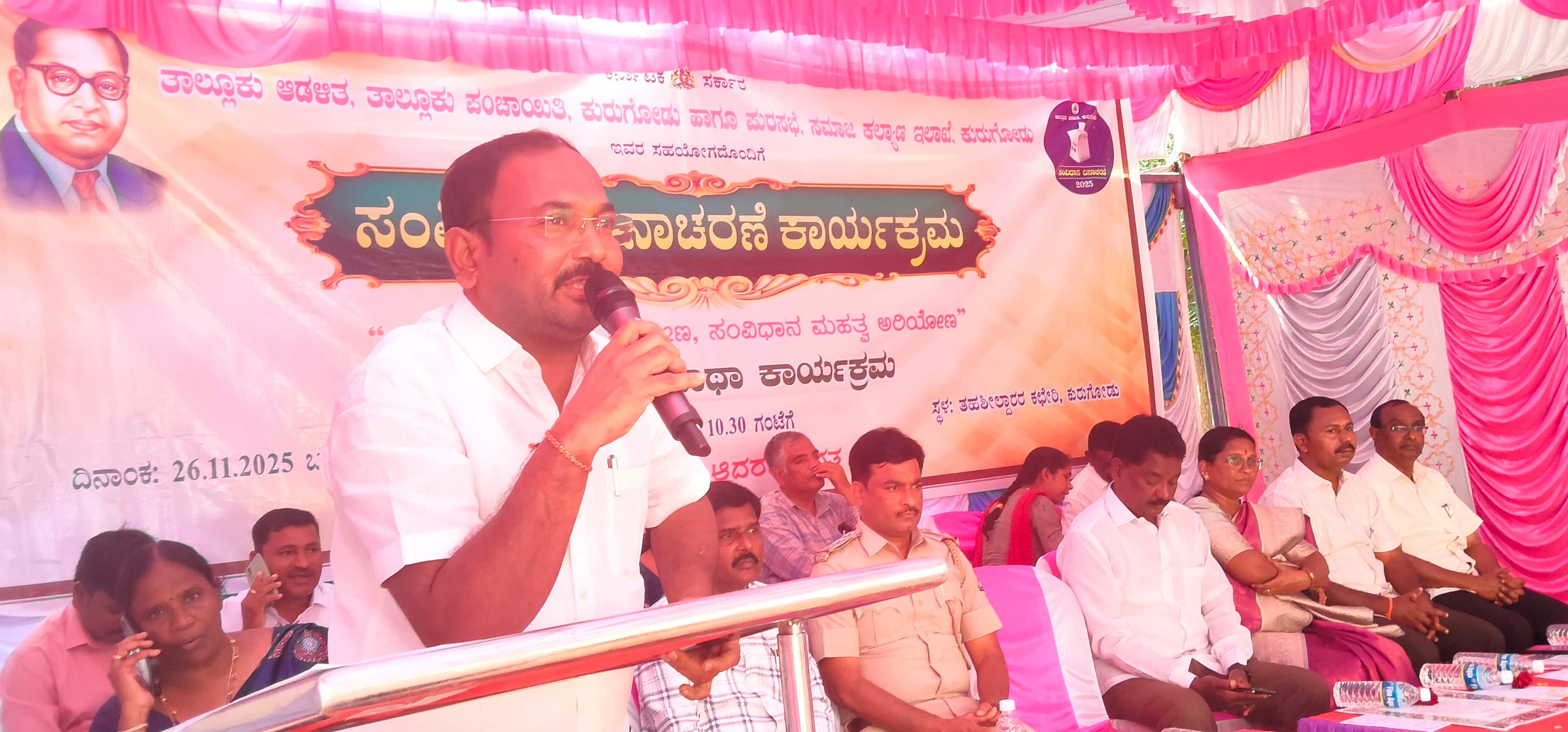 ಕುರುಗೋಡು ಪಟ್ಟಣದಲ್ಲಿ ಬುಧವಾರ ಜರುಗಿದ ಸಂವಿಧಾನ ದಿನಾಚರಣೆ ಕಾರ್ಯಕ್ರಮದಲ್ಲಿ ನರಸಪ್ಪ ತಹಸೀಲ್ದಾರ್ ಮಾತನಾಡಿದರು.