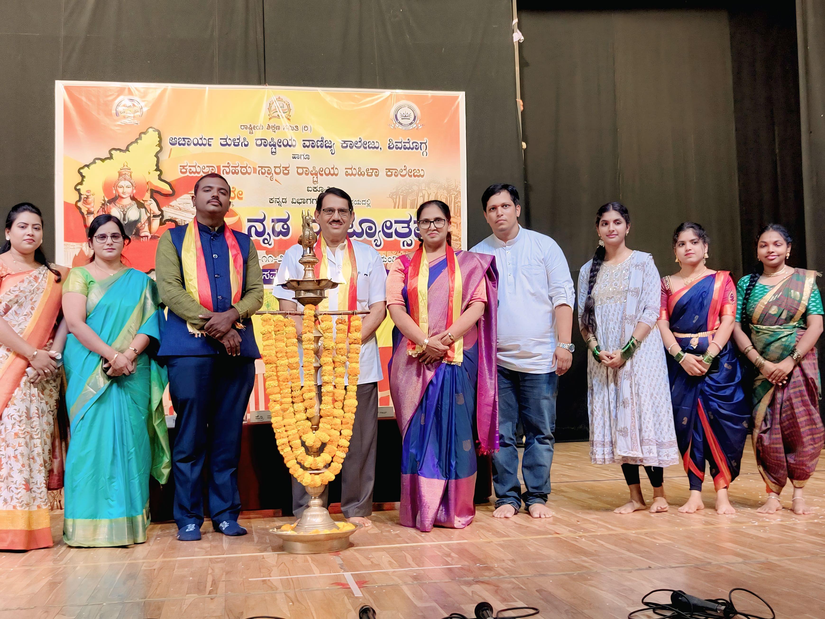 100 ಜನ ಗಾಯಕರಿಂದ ನಾಡಗೀತೆರಾಷ್ಟ್ರಕವಿ ಕುವೆಂಪು ರಚಿತ ''''''''ಜಯ ಭಾರತ ಜನನಿಯ ತನುಜಾತೆ'''''''' ನಾಡಗೀತೆಯು 100 ವರ್ಷಗಳನ್ನು ಪೂರೈಸಿರುವ ಸಂಭ್ರಮದಲ್ಲಿ, ಕಮಲಾ ನೆಹರು ಮಹಿಳಾ ಕಾಲೇಜು ಮತ್ತು ಎ.ಟಿ.ಎನ್.ಸಿ ಕಾಲೇಜಿನ 100 ಜನ ವಿದ್ಯಾರ್ಥಿಗಳಿಂದ ವೇದಿಕೆಯಲ್ಲಿ ನಾಡಗೀತೆ ಪ್ರಸ್ತುತ ಪಡಿಸಲಾಯಿತು. ಕನ್ನಡದ ಶಲ್ಯದಲ್ಲಿ ಕಂಗೊಳಿಸುತ್ತಿದ್ದ ವಿದ್ಯಾರ್ಥಿಗಳ ತಂಡದೊಂದಿಗೆ ನೆರೆದಿದ್ದ ವಿದ್ಯಾರ್ಥಿಗಳು, ಅತಿಥಿಗಳು ದನಿಗೂಡಿಸಿದರು.