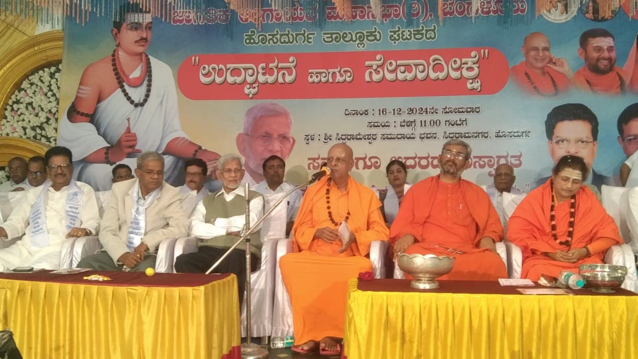 ಪಟ್ಟಣದ ಸಿದ್ದರಾಮೇಶ್ವರ ಸಮುದಾಯಭವನದಲ್ಲಿ ಸೋಮವಾರ ಆಯೋಜಿಸಲಾಗಿದ್ದ ಜಾಗತಿಕ ಲಿಂಗಾಯಿತ ಮಹಾಸಭಾದ ಹೊಸದುರ್ಗ ತಾಲೂಕು ಘಟಕದ ಉದ್ಘಾಟನೆ ಹಾಗೂ ಸೇವಾ ದೀಕ್ಷಾ ಕಾರ್ಯಕ್ರಮದ ದಿವ್ಯ ಸಾನ್ನಿಧ್ಯ ವಹಿಸಿ ಅವರು ಮಾತನಾಡಿದರು.ಲಿಂಗ ಪೂಜೆ ಮಾಡುವ ಜನ ಪ್ರಜಾಪಿತ ಬ್ರಹ್ಮಕುಮಾರಿ ಆಶ್ರಮಕ್ಕೂ ಹೊಗುತ್ತಾರೆ, ತಿರುಪತಿ ತಿಮ್ಮಪ್ಪನಿಗೂ ಹೊಗುತ್ತಾರೆ. ಮನೆಯಲ್ಲಿ ಹೋಮ ಹವನ, ಗಣಪತಿ ಪೂಜೆ, ಸತ್ಯನಾರಾಯಣ ಪೂಜೆ ಮಾಡಿದರೆ ಏನು ಪ್ರಯೋಜನ ? ಜಾಗತಿಕ ಲಿಂಗಾಯಿತ ವೇದಿಕೆಯ ಸದಸ್ಯರು ಕೇವಲ ಲಿಂಗಪೂಜೆಗೆ ಮಾತ್ರ ಸೀಮಿತವಾಗಬೇಕು ಎಂದರು.