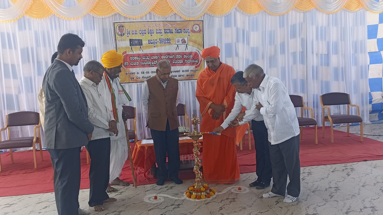 ಸಂಪಾದನಾ ಸ್ವಾಮೀಜಿ, ಚಿಕ್ಕೋಡಿ ಚರಮೂರ್ತಿ ಮಠ.13-ಕಬ್ಬೂರ-01-2ಕಬ್ಬೂರ ಪಟ್ಟಣದ ಬಿ.ಜಿ ಬೆಲ್ಲದ ಸಂಸ್ಥೆಯ ಓಂ ಸೆಂಟ್ರಲ್ ಪಬ್ಲಿಕ್ ಸ್ಕೂಲ್ನ ಸಂಸ್ಥಾಪಕ ಮಹೇಶ ಬ.ಬೆಲ್ಲದ ಅವರು ಕಬ್ಬೂರ ಪಟ್ಟಣದ ಸುತ್ತು-ಮುತ್ತಲಿನ 25 ಸರ್ಕಾರಿ, ಖಾಸಗಿ ಶಾಲೆಗಳಿಗೆ ಉಚಿತವಾಗಿ ಇಂಟರ್ಯಾಕ್ಟಿವ್ ಬೋರ್ಡ್ಗಳ ವಿತರಣಾ ಕಾರ್ಯಕ್ರಮಕ್ಕೆ ಜ್ಯೋತಿ ಬೆಳಗಿಸುವ ಮೂಲಕ ಗಣ್ಯರು ಚಾಲನೆ ನೀಡಿದರು.