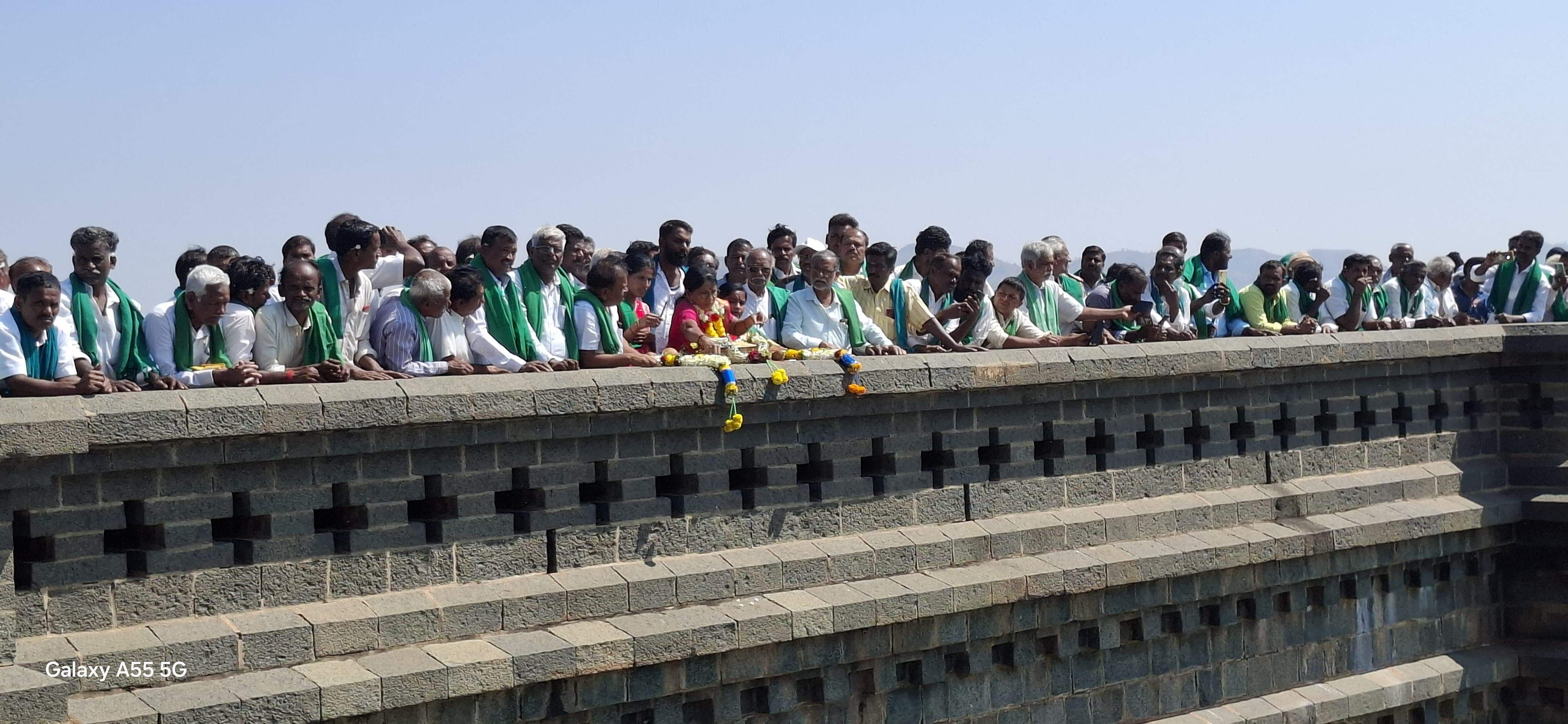 ಬಾಗಿನದ ನಂತರ ದೇವಸ್ಥಾನದ ಸಮುದಾಯ ಭವನದಲ್ಲಿ ನಡೆದ ಸಭೆಯನ್ನು ಉದ್ದೇಶಿಸಿ ಜಿಲ್ಲಾ ರೈತ ಸಂಘದ ಅಧ್ಯಕ್ಷ ಕೆ.ಟಿ.ತಿಪ್ಪೇಸ್ವಾಮಿ ಮಾತನಾಡಿ, ನಾಲ್ವಡಿ ಕೃಷ್ಣರಾಜ ಒಡೆಯರ್ ಹಾಗೂ ಮಹಾರಾಣಿ ಕೆಂಪನಂಜಮ್ಮಣ್ಣಿಯವರು ಜಿಲ್ಲೆಯ ಜನರಿಗೆ ವ್ಯವಸಾಯ ಮತ್ತು ಜಾನುವಾರುಗಳಿಗೆ ಕುಡಿಯ ನೀರಿನ ಸಲುವಾಗಿ ಜಲಾಶಯ ನಿರ್ಮಿಸಿದರು. ಇದು ಒಂದು ಐತಿಹಾಸಿಕ ದಿನವಾಗಿದ್ದು, ಜಿಲ್ಲೆಯ ಎಲ್ಲಾ ರೈತರು ಒಟ್ಟಿಗೆ ಸೇರಿ ಬಾಗಿನ ಅರ್ಪಿಸಿದ್ದೇವೆ. ಇನ್ನು ಮುಂದೆ ನಮ್ಮ ಜಿಲ್ಲೆಯ ಎಲ್ಲಾ ರೈತರು ಒಟ್ಟುಗೂಡಿ ನೀರಾವರಿ ಹೋರಾಟವನ್ನು ತೀವ್ರವಾಗಿ ಹಮ್ಮಿಕೊಳ್ಳಬೇಕಾಗಿದೆಎಂದು ಕರೆ ನೀಡಿದರು.ಕೇಂದ್ರ ಸರ್ಕಾರ ಭದ್ರಾ ಮೇಲ್ದಂಡೆ ಯೋಜನೆಗೆ ಬಜೆಟ್ನಲ್ಲಿ ಘೋಷಣೆ ಮಾಡಿರುವ 5300 ಕೋಟಿ ರು. ಹಣವನ್ನು ಕೂಡಲೇ ಬಿಡುಗಡೆಗೊಳಿಸಬೇಕು. ರಾಜ್ಯ ಸರ್ಕಾರ 5000 ಕೋಟಿ ರು. ಹಣವನ್ನು ಈ ಬಜೆಟ್ ಅಧಿವೇಶನದಲ್ಲಿ ಮೀಸಲಿಡಬೇಕು. ಜಿಲ್ಲೆಯ ಎಲ್ಲಾ ಕೆರೆಗಳಿಗೂ ನೀರು ತುಂಬಿಸಬೇಕು ಎಂದು ಆಗ್ರಹಿಸಿ ಎಲ್ಲಾ ತಾಲೂಕು ಕಚೇರಿ ಮುಂಭಾಗದಲ್ಲಿ ಬರುವ 30ನೇ ತಾರೀಖಿನಂದು ಅನಿರ್ದಿಷ್ಟಾವಧಿ ಚಳುವಳಿ ಹಮ್ಮಿಕೊಳ್ಳಲಾಗುವುದು ಎಂದು ತಿಳಿಸಿದರು.