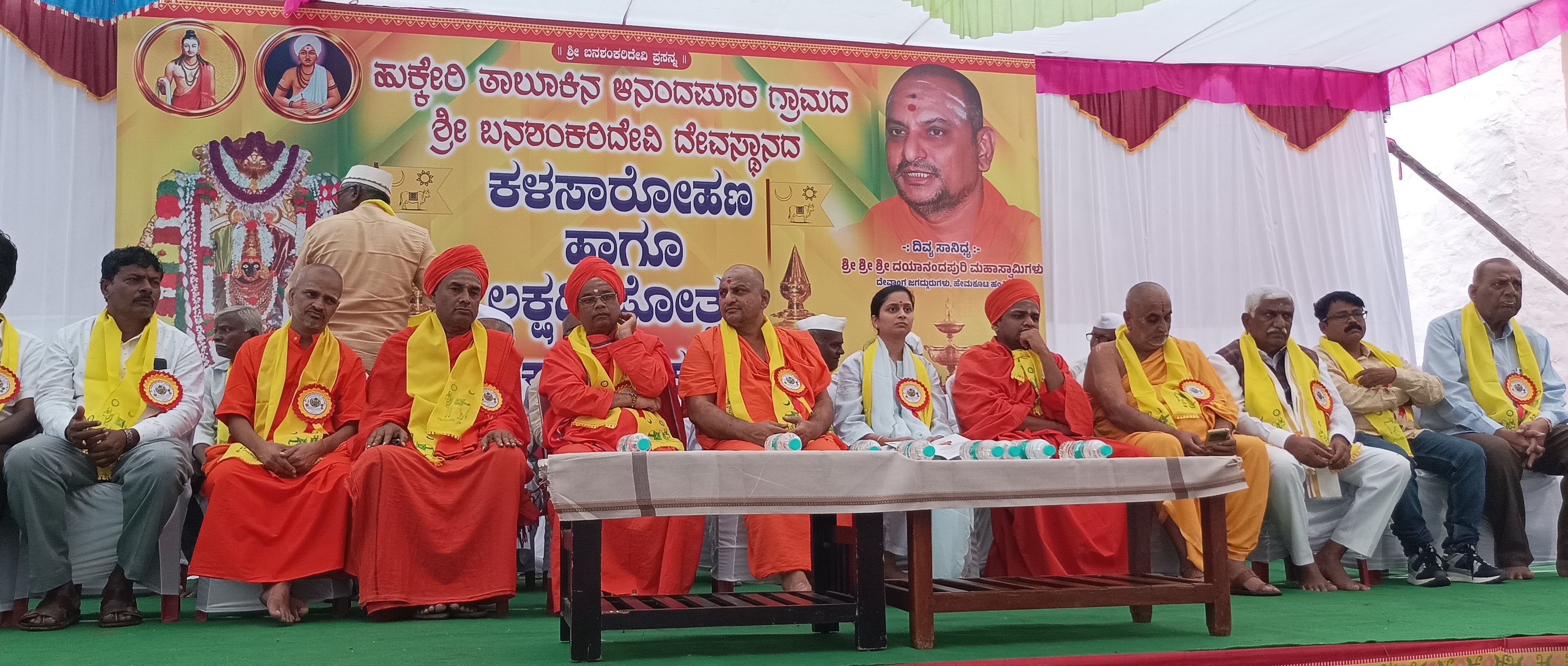 ಹುಟ್ಟು, ಸಾವುಗಳ ಮಧ್ಯದಲ್ಲಿನ ಸುವರ್ಣಮಯವಾದ ಸಮಯವೇ ಬದುಕು. ಈ ಬದುಕನ್ನು ಸ್ಚಚ್ಛಂದವಾಗಿ ಶಾಂತಚಿತ್ತದಿಂದ ಕಳೆದು ಧರ್ಮದ ಕಾಯಕವನ್ನು ಮಾಡುವಲ್ಲಿ ಮಿಸಲಿಡೋಣ ಎಂದು ಗಾಯತ್ರಿ ಪೀಠ ಮಹಾಸಂಸ್ಥಾನ ಹೇಮಕೂಟ ಹಂಪಿಯ ದೇವಾಂಗ ಸಮಾಜದ ಜಗದ್ಗುರು ದಯಾನಂದ ಪುರಿ ಮಹಾಸ್ವಾಮಿಗಳು ನುಡಿದರು.ಸಮೀಪದ ಅನಂದಪೂರ-ಹತ್ತರಗಿ ಗ್ರಾಮದಲ್ಲಿ ಬನಶಂಕರಿ ದೇವಸ್ಥಾನದ ಕಳಸಾರೋಹಣ ನೆರವೇರಿಸಿ ಆಶೀರ್ವಚನ ನೀಡಿ ಮಾತನಾಡಿದ ಅವರು, ರೈತ ಮನುಕುಲದ ಹೊಟ್ಟೆಯನ್ನು ತಣಿಸಿದರೇ, ನೇಕಾರ ಮನುಕುಲದ ಮಾನ ಕಾಪಾಡುವ ಕಾಯಕ ಮಾಡುತ್ತಾರೆ. ಆ ದಿಸೆಯಲ್ಲಿ ಶ್ರೇಷ್ಠರಾದ ನೇಕಾರರ ಬದುಕಿನ ಬಗ್ಗೆ ಚಿಂತನೆ ಅಗತ್ಯವಾಗಿದ್ದು, ಯಮಕನಮರಡಿ ದೇವಾಂಗ ಸಮಾಜದ ಭಕ್ತಿ ಶ್ರೇಷ್ಠವಾಗಿದೆ. ಬನಶಂಕರಿ ದೇವಿ ಗುಡಿಯು ಉತ್ತರೋತ್ತರ ಅಭಿವೃದ್ಧಿ ಹೊಂದಿ ಬದುಕಿನ ನೆಲೆಗಾಗಿ ನೇಕಾರರು ನಡೆಸುತ್ತಿರುವ ವೃತ್ತಿ ಸದಾವಕಾಲ ಉತ್ತುಂಗಕ್ಕೇರಲಿ ಎಂದು ಹಾರೈಸಿದರು.ಭಕ್ತಿ, ಭಾವನೆಗಳಿಗೆ ಭಗವಂತನೋಲಿಯುತ್ತಾನೆ. ಹುಟ್ಟು ಆಕಸ್ಮಿಕ, ಸಾವು ನಿಶ್ಚಿತ. ಹುಟ್ಟು-ಸಾವಿನ ಮಧ್ಯೆ ಬದುಕಿ ಧರ್ಮದ ಕಾರ್ಯಗಳನ್ನು ಮಾಡಬೇಕು. ದೇವರ ದಾಸಿಮಯ್ಯನವರು ಅನುಭಾವದ ನುಡಿಗಳಿಂದ ಜೀವನಕ್ಕೆ ಒಳ್ಳೆಯ ಸಂದೇಶ ಸಾರಿದ್ದು ಅವರ ಮಾರ್ಗದಲ್ಲಿ ನಾವೆಲ್ಲರೂ ಬದುಕಬೇಕಾಗಿದೆ ಎಂದು ತಿಳಿಸಿದರು.ಚಿಕ್ಕೋಡಿ ಸಂಸದೆ ಪ್ರಿಯಾಂಕಾ ಜಾರಕಿಹೊಳಿ ಮಾತನಾಡಿ, ಸಮಾಜದಲ್ಲಿ ಬರುವ ಸವಾಲುಗಳನ್ನು ಮೆಟ್ಟಿ ನಿಲ್ಲುವ ಧೈರ್ಯ ಅಗತ್ಯವಾಗಿದ್ದು, ದೇವಾಂಗ ಸಮಾಜದ ಧೈಯೋದ್ದೇಶಗಳನ್ನು ಮುಂದಿನ ಪೀಳಿಗೆಗೆ ತಿಳಿಸಿ ಸಮಾಜದಲ್ಲಿ ಯುವಕರು-ಯುವತಿಯರು ಯೋಜನೆಗಳನ್ನು ಹಮ್ಮಿಕೊಂಡು ಸಮಜದ ಅಭಿವೃದ್ಧಿಗಾಗಿ ಶ್ರಮಿಸಿ ಸಮಾಜ ಮುನ್ನೆಲೆಗೆ ಬರುವಂತೆ ಸಲಹೆ ನೀಡಿದರು.ವೇದಿಕೆಯಲ್ಲಿ ಕಾರಿಮಠ ಹತ್ತರಗಿಯ ಗುರುಸಿದ್ದೇಶ್ವರ ಮಹಾಸ್ವಾಮಿಗಳು, ಯಮಕನಮರಡಿ ಹುಣಸಿಕೊಳ್ಳಮಠದ ರಾಚೋಟಿಶ್ವರ ಮಹಾಸ್ವಾಮಿಗಳು, ಹತ್ತರಗಿ ಹರಿ ಮಂದಿರದ ಡಾ.ನರಸಿಂಹ ಏಕನಾಥ ಆನಂದ ಮಹಾರಾಜ ಗೋಸಾವಿ, ರಕ್ಷಿ ಶಿರಗಾಂವದ ಶಿವಾನಂದ ಮಹಾಸ್ವಾಮಿಗಳು, ಯಮಕನಮರಡಿಯ ಸಿದ್ದಬಸವ ದೇವರು ಪಾಲ್ಗೊಂಡಿದ್ದರು. ಕಾರ್ಯಕ್ರಮದ ಅಧ್ಯಕ್ಷತೆಯನ್ನು ಚಂದ್ರಕಾಂತ ಕಾಪಸಿ, ವಹಿಸಿದ್ದರು. ನೇಕಾರರ ಒಕ್ಕೂಟ ಹಾಗೂ ಮಾಜಿ ಶಾಸಕರಾದ ಎಂ.ಡಿ.ಲಕ್ಷ್ಮೀನಾರಾಯಣ, ದೇವಾಂಗ ಸಮಾಜದ ರಾಜ್ಯಾಧ್ಯಕ್ಷ ರವಿಂದ್ರ ಕಲಬುರ್ಗಿ, ಸಂಕೇಶ್ವರದ ಗಣ್ಯರಾದ ಅಪ್ಪಾಸಾಹೇಬ ಶಿರಕೊಳಿ, ರವಿಂದ್ರ ಜಿಂಡ್ರಾಳಿ, ಗಜಾನನ ಗುಂಜೇರಿ, ಮಹಾದೇವ ಪಟೋಳಿ, ಮುಂತಾದವರು ಇದ್ದರು. ಈ ಸಂದರ್ಭದಲ್ಲಿ ಚಂದ್ರಶೇಖರ ಚಪಣಿ, ಕಾಶಪ್ಪ ಮಳ್ಳೋಳ್ಳಿ, ವೀರಭದ್ರ ಸುಂಬಳಿ, ಬಾಬುರಾವ ಹಟ್ಟಿ, ಜಯಂತ ಹಟ್ಟಿ, ವಿರೂಪಾಕ್ಷಿ ಮಾಸ್ತಮರಡಿ, ಸುಭಾಷ ಮಳೊಳ್ಳಿ, ಚಂದ್ರಕಾಂತ ಕಾಪ್ಸಿ, ಮಹಾದೇವ ಅತ್ತಿಮರದ, ಅಶೋಕ ಮನವಾಡಿ ಶಶಿಕಾಂತ ಹಟ್ಟಿ, ವಜಯ ಜಕ್ಕನ್ನವರ, ಸಂಕಪ್ಪ ಮುಗಳಿ ಮುಂತಾದವರು ಉಪಸ್ಥಿತರಿದ್ದರು. ಬಸವರಾಜ ಅತ್ತಿಮರದ ಸ್ವಾಗತಿಸಿದರು. ಎಂ.ಎಸ್.ಮಳ್ಳೊಳ್ಳಿ ನಿರೂಪಿಸಿದರು.