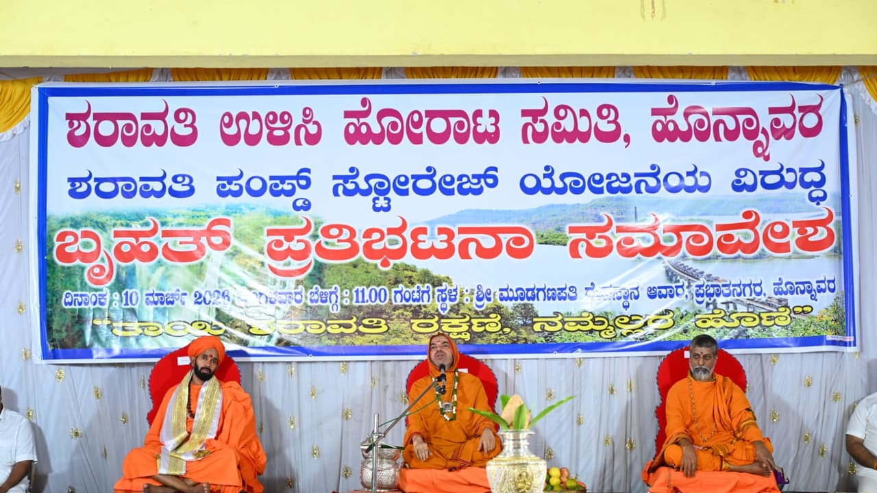 ಯಾರಿಗೂ ತೊಂದರೆ ಆಗದಂತಹ ಯೋಜನೆಗಳು ಬರಲಿ. ಉ.ಕ. ಜಿಲ್ಲೆಯ ಪರಿಸ್ಥಿತಿ ಮಾತ್ರ ವಿಚಿತ್ರವಾಗಿದೆ. ಎಲ್ಲಾ ಯೋಜನೆ ಇಲ್ಲಿಗೆ ಬರುತ್ತದೆ. ಸರಕಾರಕ್ಕೆ ಜನರ ಅಭಿಪ್ರಾಯ ಕೇಳುವ ವ್ಯವಧಾನ ಇಲ್ಲ. ಪರಿಸರ ತಜ್ಞರ ಅಭಿಪ್ರಾಯ ಕೇಳುವುದಿಲ್ಲ. ಇದಕ್ಕೆ ಕಾರಣ ನಮ್ಮಲ್ಲಿ ಸಂಘಟನೆ ಭದ್ರವಾಗಿರದೇ ಇರುವುದು ಎಂದರು. ಜಿಲ್ಲೆಯ ಜನ ಇಂತಹ ಯೋಜನೆಯ ವಿರುದ್ಧ ಧ್ವನಿ ಎತ್ತದೆ ಇದ್ದರೆ ಈ ಅವಸ್ಥೆ ಮುಂದುವರಿಯುತ್ತದೆ. ನಮ್ಮಲ್ಲಿ ಒಡಕು ಮೂಡಬಾರದು ಎಂದು ಎಚ್ಚರಿಸಿದರು.ಜಿಲ್ಲಾ ಉಸ್ತುವಾರಿ ಸಚಿವ ಮಂಕಾಳ ವೈದ್ಯ ಮಾತನಾಡಿ, ರಾಜಕಾರಣ ಮಾಡಲು ಬೇರೆ ವೇದಿಕೆ ಇದೆ. ಸ್ವಾಮೀಜಿಗಳನ್ನು ಕೂರಿಸಿಕೊಂಡು ರಾಜಕಾರಣ ಮಾಡುವುದಲ್ಲ. ಶರಾವತಿ ಉಳಿಸಿ ಸಮಿತಿ ಉತ್ತಮ ಕೆಲಸ ಮಾಡಿದೆ. ಪಂಪ್ಡ್ ಸ್ಟೋರೇಜ್ ಯೋಜನೆಯು ಬೊಮ್ಮಾಯಿಯವರು ಮುಖ್ಯಮಂತ್ರಿಯಾಗಿದ್ದ ಅವಧಿಯಲ್ಲಿಯೇ ಮಂಜೂರಾಗಿದ್ದು, ಅಂದೇ ಈ ಯೋಜನೆಯನ್ನು ಕ್ಷೇತ್ರದ ಜನರ ಹಿತದೃಷ್ಟಿಯಿಂದ ವಿರೋಧಿಸಿದ್ದೇನೆ. ಅಂದಿನ ಮುಂಗಡಪತ್ರದಲ್ಲಿನ ದಾಖಲೆಗಳ ವಿವರ ಉಲ್ಲೇಖಿಸಿದರು. ರಾಘವೇಶ್ವರ ಶ್ರೀಗಳು ನೀಡುವ ಆದೇಶವನ್ನು ತಾನು ಶಿರಸಾ ವಹಿಸಿ ಪಾಲಿಸುತ್ತೇನೆ. ಶರಾವತಿ ಪಂಪ್ಡ್ ಸ್ಟೋರೇಜ್ ಯೋಜನೆಯ ಅನುಷ್ಠಾನಕ್ಕೆ ಅವಕಾಶ ನೀಡುವುದಿಲ್ಲ. ಹೋರಾಟ ಸಮಿತಿಯ ಮತ್ತು ಜನರ ಬೆಂಬಲಕ್ಕೆ ತಾನು ನಿಲ್ಲುವುದಾಗಿ ಗುರುಗಳ ಮುಂದೆ ಇಂದೇ ಪ್ರಮಾಣ ಮಾಡುವುದಾಗಿ ಘೋಷಿಸಿದರು.ಶಾಸಕ ದಿನಕರ ಶೆಟ್ಟಿ ಮಾತನಾಡಿ, ಇದು ಮಾರಕ ಯೋಜನೆ ಎಂದು ವಿಧಾನಸಭೆಯಲ್ಲಿ ಅಭಿಪ್ರಾಯ ಮಂಡಿಸಿದ್ದೇನೆ. ಜನ ಎಚ್ಚರಗೊಂಡರೆ ಈ ಯೋಜನೆ ನಿಲ್ಲಿಸಲು ಸಾಧ್ಯ ಎಂದರು.ನಂತರ ಡಾ. ಪ್ರಣವಾನಂದ ಸ್ವಾಮೀಜಿ, ಬಂಗಾರಮಕ್ಕಿಯ ಧರ್ಮಾಧಿಕಾರಿ ಮಾರುತಿ ಗುರೂಜಿ, ಮಾಜಿ ಸಚಿವ ಶಿವಾನಂದ ನಾಯ್ಕ, ಮಾಜಿ ಶಾಸಕ ಜೆ.ಡಿ. ನಾಯ್ಕ, ಸುನೀಲ ಬಿ.ನಾಯ್ಕ, ಜಿಲ್ಲಾ ಕಾಂಗ್ರೆಸ್ ಅಧ್ಯಕ್ಷ ಸಾಯಿ ಗಾಂವ್ಕರ, ಬಿಜೆಪಿ ಜಿಲ್ಲಾಧ್ಯಕ್ಷ ಎನ್.ಎಸ್. ಹೆಗಡೆ ಕರ್ಕಿ, ಜನತಾದಳ ಜಿಲ್ಲಾಧ್ಯಕ್ಷ ಸೂರಜ್ ನಾಯ್ಕ ಸೋನಿ, ಬ್ಲಾಕ್ ಕಾಂಗ್ರೆಸ್ ಅಧ್ಯಕ್ಷ ಗೋವಿಂದ ಎಸ್. ನಾಯ್ಕ, ಮಹೇಶ ನಾಯ್ಕ, ಜನತಾದಳ ಬ್ಲಾಕ್ ಅಧ್ಯಕ್ಷ ಟಿ.ಟಿ. ನಾಯ್ಕ, ಬಿಜೆಪಿಯ ಮಂಡಲ ಅಧ್ಯಕ್ಷ ಮಂಜುನಾಥ ಎಂ.ನಾಯ್ಕ, ಶರಾವತಿ ಉಳಿಸಿ ಹೋರಾಟ ಸಮಿತಿಯ ಅಧ್ಯಕ್ಷ ಜೆ.ಟಿ.ಪೈ, ಅಧ್ಯಕ್ಷ ವೆಂಕಟರಮಣ ಹೆಗಡೆ ಕವಲಕ್ಕಿ, ಕಾರ್ಯಾಧ್ಯಕ್ಷ ಚಂದ್ರಕಾಂತ ಕೊಚರೇಕರ, ಕ್ರಾಂತಿರಂಗದ ಅಧ್ಯಕ್ಷ ಮಂಗಲದಾಸ ನಾಯ್ಕ, ಪಟ್ಟಣ ಪಂಚಾಯತಿ ಅಧ್ಯಕ್ಷ ವಿಜಯ ಕಾಮತ, ಮಾಸ್ತಪ್ಪ ನಾಯ್ಕ ಮತ್ತಿತರರಿದ್ದರು.ಶರಾವತಿ ಉಳಿಸಿ ಹೋರಾಟ ಸಮಿತಿಯ ಅಧ್ಯಕ್ಷ ವೆಂಕಟ್ರಮಣ ಹೆಗಡೆ ಸ್ವಾಗತಿಸಿದರು. ಕಾರ್ಯಾಧ್ಯಕ್ಷ ಚಂದ್ರಕಾಂತ ಕೊಚರೇಕರ ಪ್ರಾಸ್ತಾವಿಕ ನುಡಿಗಳನ್ನಾಡಿದರು. ಕೇಶವ ನಾಯ್ಕ ಬಳ್ಕೂರ ವಂದಿಸಿದರು.ವಿಶ್ವನಾಥ ನಾಯಕ ನಿರೂಪಿಸಿದರು.
