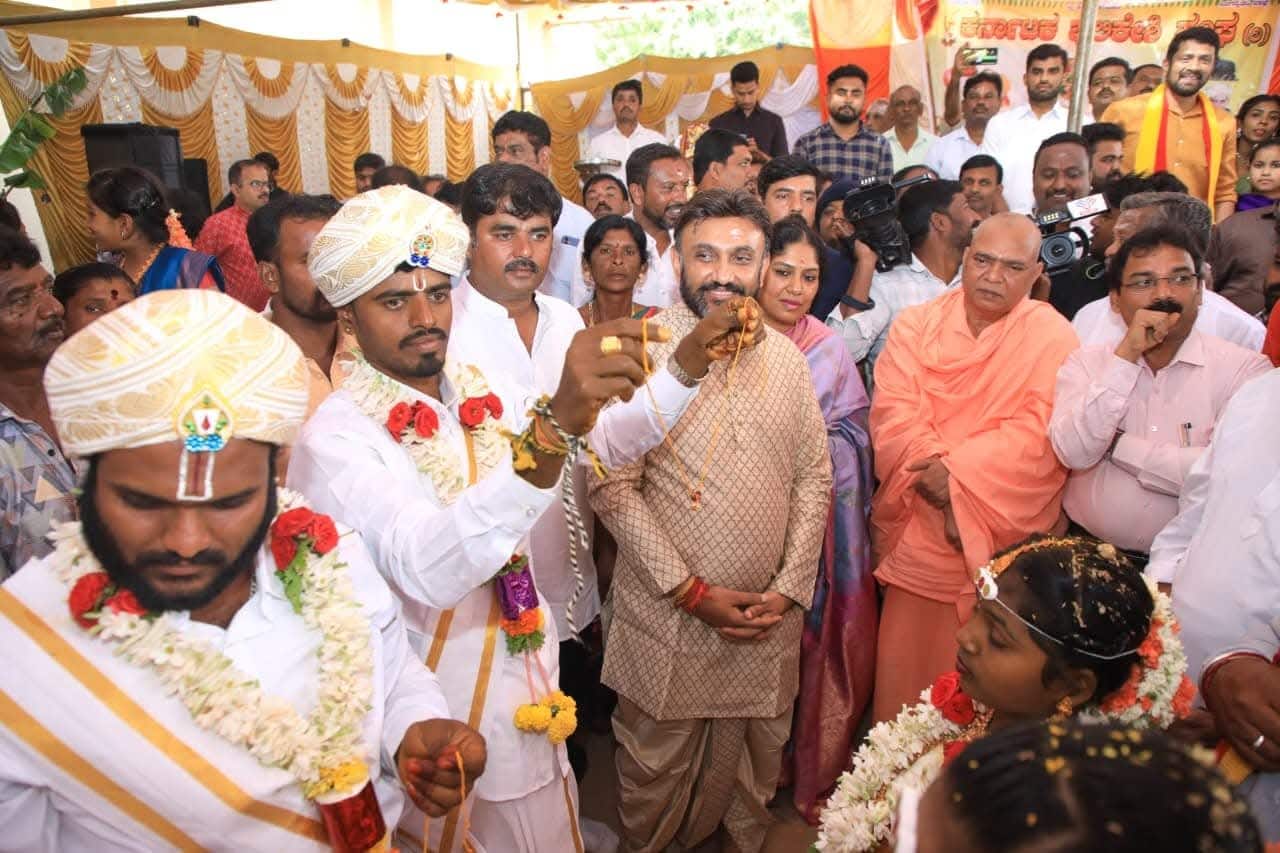 ತಾಳಿ ವಿತರಿಸಿದ ಸಂಸದ ಸುಧಾಕರ್ ದಂಪತಿಇದೇ ವೇಳೆ ಸಂಸದ ಡಾ.ಕೆ.ಸುಧಾಕರ್ ಮತ್ತು ಡಾ.ಪ್ರೀತಿ ಸುಧಾಕರ್ ಸಾಮೂಹಿಕ ವಿವಾಹ ಮಹೋತ್ಸವದಲ್ಲಿ 13 ಜೋಡಿ ನೂತನ ವಧುವರರಿಗೆ ತಾಳಿ ನೀಡಿ ಆರ್ಶಿವಾದಿಸಿದರು. ಜತೆಗೆ ಚಿತ್ರನಟರು ಜನಪ್ರತಿನಿಧಿಗಳು ಭಾಗವಹಿಸಿ ನೂತನ ದಂಪತಿಗಳಿಗೆ ಅಕ್ಷತೆ ಹಾಕಿ ಆಶೀರ್ವದಿಸಿದರು.