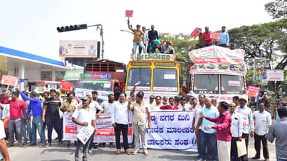 ಮಂಡ್ಯದಲ್ಲಿ ಲಾರಿ ಮಾಲೀಕರು ಮತ್ತು ಚಾಲಕರು ನಗರದಲ್ಲಿ ಪ್ರತಿಭಟನಾ ಮೆರವಣಿಗೆ ನಡೆಸಿದರು.