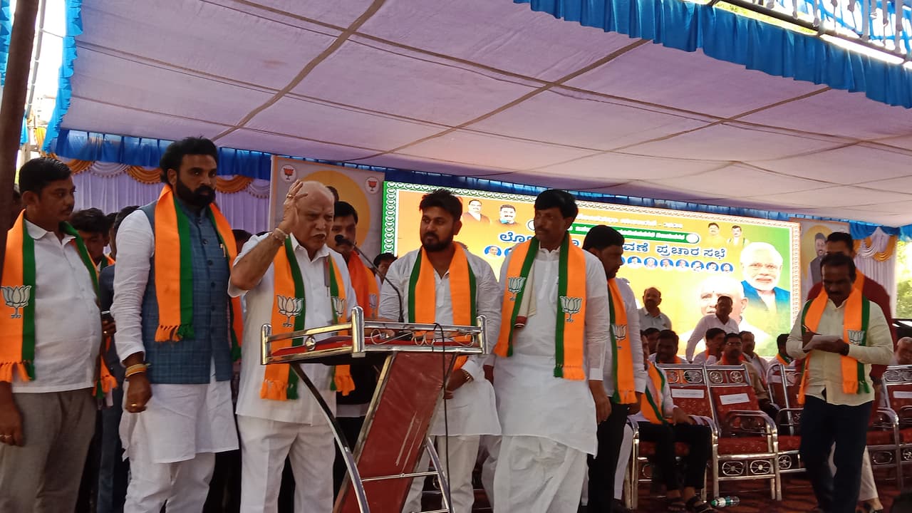 ಹೂವಿನಹಡಗಲಿ: ಹಣ, ಹೆಂಡ, ತೋಳ್ಬಲ ಬಳಸಿ ಕೇಂದ್ರದಲ್ಲಿ ಅಧಿಕಾರಕ್ಕೆ ಬರುತ್ತೇವೆಂಬ ಭ್ರಮೆಯಲ್ಲಿರುವ ಕಾಂಗ್ರೆಸ್ ಪಕ್ಷ ಮೊದಲು ತನ್ನ ಪ್ರಧಾನಿ ಅಭ್ಯರ್ಥಿ ಯಾರೆಂದು ಘೋಷಣೆ ಮಾಡಲಿ ಎಂದು ಮಾಜಿ ಸಿಎಂ ಬಿ.ಎಸ್. ಯಡಿಯೂರಪ್ಪ ಸವಾಲು ಹಾಕಿದ್ದಾರೆ.