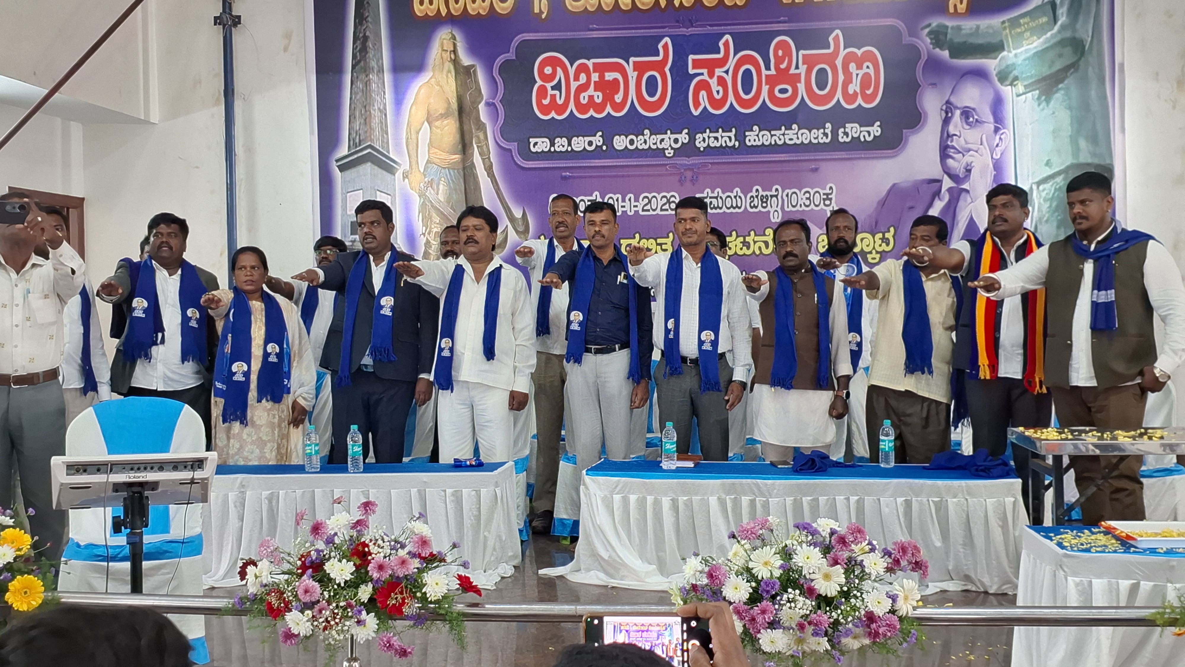 ಹೊಸಕೋಟೆಯ ಅಂಬೇಡ್ಕರ್ ಭವನದಲ್ಲಿ ಭೀಮ ಕೋರೆಗಾಂವ್ ವಿಜಯೋತ್ಸವದ ವಿಚಾರಸಂಕಿರಣದಲ್ಲಿ ಪ್ರತಿಜ್ಞಾ ವಿಧಿ ಸ್ವೀಕರಿಸಲಾಯಿತು. ದಲಿತ ಸಂಘಟನೆಗಳ ಒಕ್ಕೂಟದ ಅಧ್ಯಕ್ಷ ಚಿನ್ನಸ್ವಾಮಿ ಇತರರು ಪಾಲ್ಗೊಂಡಿದ್ದರು.
