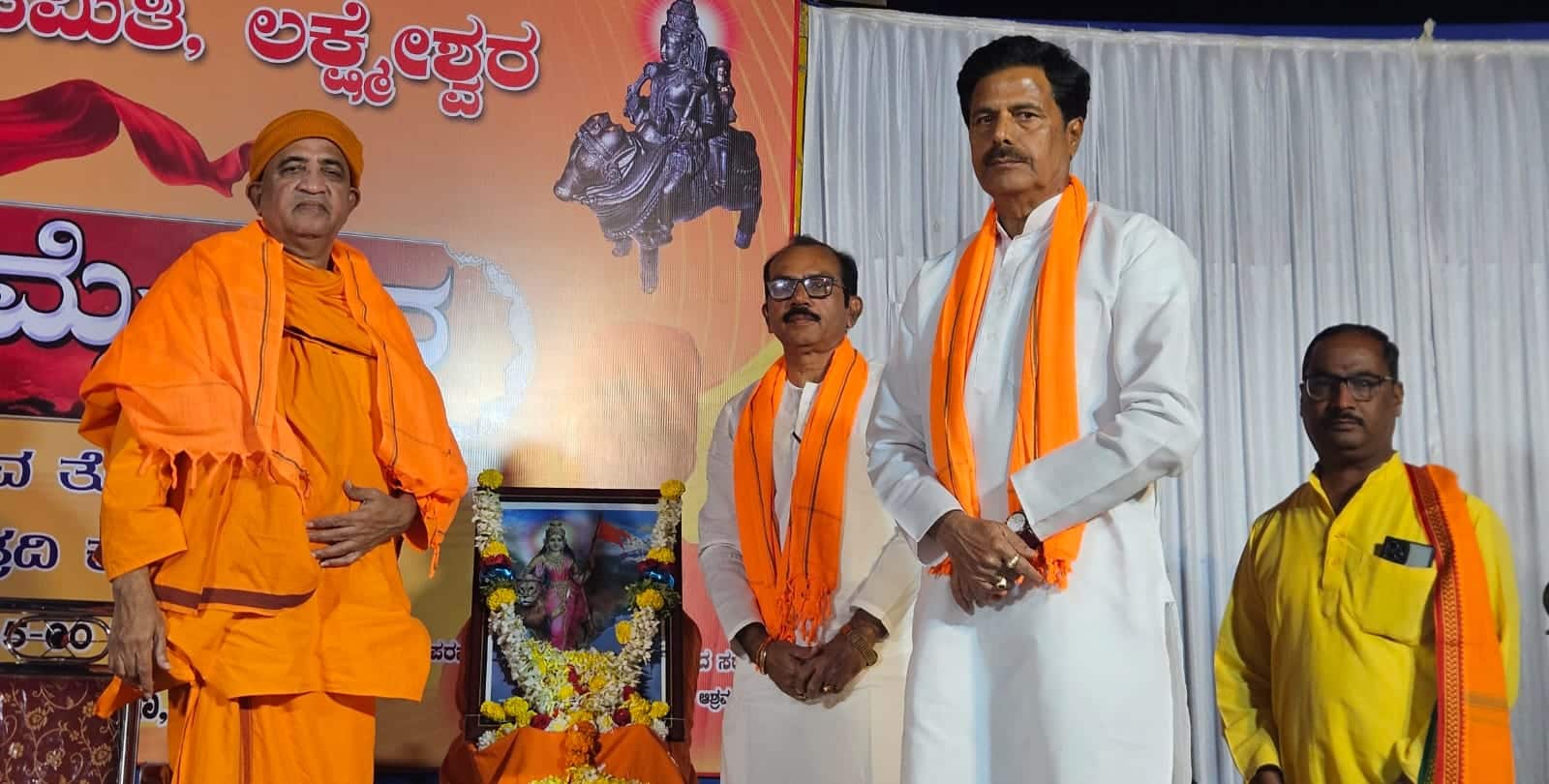 ಭಾನುವಾರ ಪಟ್ಟಣದ ಸೋಮೇಶ್ವರ ತೇರಿನ ಮನೆಯ ಆವರಣದಲ್ಲಿ ನಡೆದ ಹಿಂದೂ ಸಮ್ಮೇಳನದಲ್ಲಿ ಭಾರತಮಾತೆಯ ಭಾವಚಿತ್ರಕ್ಕೆ ಪುಷ್ಪಾರ್ಚನೆ ಮಾಡಿ ಮಾತನಾಡಿದರು.ಭಾರತೀಯ ಧರ್ಮ ಶ್ರೇಷ್ಠ ಧರ್ಮವಾಗಿದೆ. ಹಿಂದೂ ಧರ್ಮ ಶ್ರೇಷ್ಠತೆಯನ್ನು ಅಳವಡಿಸಿಕೊಳ್ಳಬೇಕು. ಹಿಂದೂ ಸಮಾಜವನ್ನು ಕಟ್ಟುವುದು ಹೇಗೆ ಎನ್ನುವ ಚಿಂತನೆ ನಡೆಸುವುದು ಅಗತ್ಯವಾಗಿದೆ. ನಮ್ಮಲ್ಲಿನ ಕೆಲ ಕಾವಿಧಾರಿಗಳು ಹಿಂದೂ ಧರ್ಮವನ್ನು ದಾರಿ ತಪ್ಪಿಸುವ ಕೆಲಸ ಮಾಡುತ್ತಿರುವುದು ನೋವಿನ ಸಂಗತಿಯಾಗಿದೆ. ಹಿಂದೂ ಧರ್ಮದ ತಾಕತ್ತು ಯಾವ ವಿಜ್ಞಾನಕ್ಕೂ ಇಲ್ಲ. ಸನಾತನ ಹಿಂದೂ ಧರ್ಮವು ವಿಜ್ಞಾನಕ್ಕೂ ಮಿಗಿಲಾಗಿದೆ. ವಿಜ್ಞಾನವು ನಮ್ಮ ಸನಾತನ ಧರ್ಮದ ಮುಂದೆ ಸಮನಾಗಿಲ್ಲ ಎಂದರು. ಅಮೆರಿಕದ ವಿಶ್ವವಿದ್ಯಾಲಯಗಳಲ್ಲಿ ಸನಾತನ ಹಿಂದೂ ಧರ್ಮದ ಬೋಧನೆ ಮಾಡುವ ಕಾಲ ದೂರವಿಲ್ಲ. ಭಾರತೀಯರ ಬೌದ್ಧಿಕ ಶಕ್ತಿ ಜಗತ್ತಿನ ಬೌದ್ಧಿಕ ಶಕ್ತಿಗಿಂತ ಹೆಚ್ಚು ಇದೆ. ಜಗತ್ತಿನ ಯಾವುದೇ ದೇಶವು ಹೆಚ್ಚು ಜ್ಞಾನವನ್ನು ಪಡೆದುಕೊಂಡಿದ್ದರೆ ಅದು ಭಾರತೀಯರ ನೀಡಿದ ಕೊಡುಗೆಯಾಗಿದೆ. ಸ್ವಾಮಿ ವಿವೇಕಾನಂದರಂತೆ ಬದುಕುವ ಕಾರ್ಯವನ್ನು ಅನುಸರಿಸಿ ಜೀವನ ಸಾಗಿಸಬೇಕು ಎಂದರು.