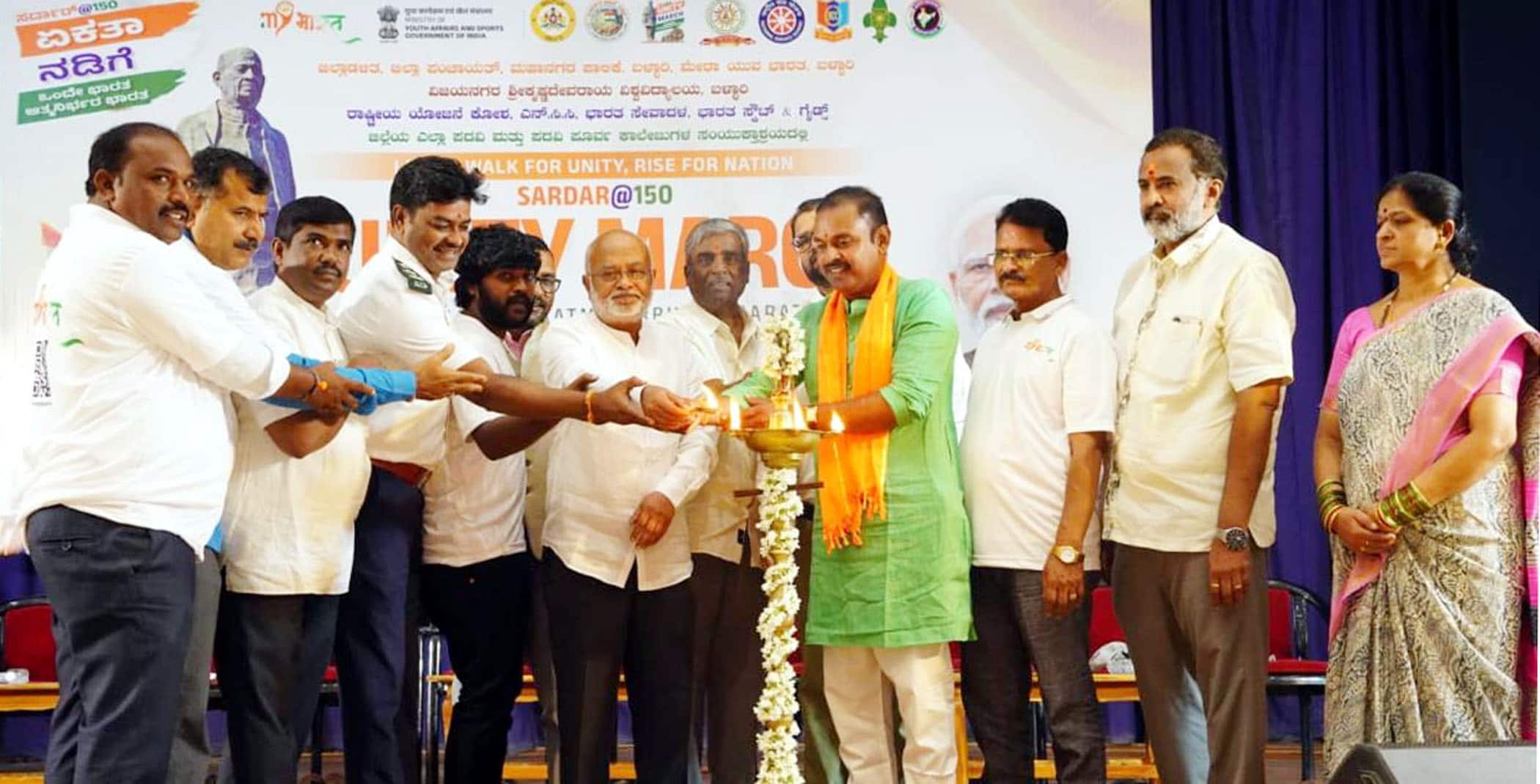 ಜಿಲ್ಲಾಡಳಿತ, ಜಿಲ್ಲಾ ಪಂಚಾಯತ್, ಕೇಂದ್ರ ಸರ್ಕಾರದ ಯುವ ಕಾರ್ಯ ಮತ್ತು ಕ್ರೀಡಾ ಸಚಿವಾಲಯದಡಿಯ ಮೇರಾ ಯುವ ಭಾರತ್ ಕೇಂದ್ರ, ಮಹಾನಗರ ಪಾಲಿಕೆ, ವಿಜಯನಗರ ಶ್ರೀ ಕೃಷ್ಣದೇವರಾಯ ವಿಶ್ವವಿದ್ಯಾಲಯ, ರಾಷ್ಟ್ರೀಯ ಯೋಜನಾ ಘಟಕ, ಜಿಲ್ಲೆಯ ಎಲ್ಲ ಪದವಿಪೂರ್ವ ಕಾಲೇಜುಗಳು, ಭಾರತ ಸ್ಕೌಟ್ಸ್ ಮತ್ತು ಗೈಡ್ಸ್ ಸಂಯುಕ್ತಾಶ್ರಯದಲ್ಲಿ ಉಕ್ಕಿನ ಮನುಷ್ಯ ಮತ್ತು ರಾಷ್ಟ್ರೀಯ ಏಕತೆಯ ಪ್ರತಿಪಾದಕ ಸರ್ದಾರ್ ವಲ್ಲಭಭಾಯಿ ಅವರ 150ನೇ ಜನ್ಮ ದಿನಾಚರಣೆ ಅಂಗವಾಗಿ ನಗರದ ಡಾ. ಜೋಳದರಾಶಿ ದೊಡ್ಡನಗೌಡ ರಂಗಮಂದಿರದಲ್ಲಿ ಬುಧವಾರ ಏರ್ಪಡಿಸಿದ್ದ ಏಕತಾ ನಡಿಗೆಯ ವೇದಿಕೆ ಕಾರ್ಯಕ್ರಮ ಉದ್ಘಾಟಿಸಿ ಮಾತನಾಡಿದರು.ಭಾರತದ ಮೊದಲ ಉಪಪ್ರಧಾನ ಮಂತ್ರಿ ಹಾಗೂ ಗೃಹ ಸಚಿವರಾಗಿದ್ದ ಸರ್ದಾರ್ ವಲ್ಲಭಭಾಯಿ ಪಟೇಲ್ ಅವರು ಭಾರತದ ‘ಉಕ್ಕಿನ ಮನುಷ್ಯ’ ಎಂದೇ ಪ್ರಖ್ಯಾತರಾಗಿದ್ದರು. ಭಾರತದ 550ಕ್ಕೂ ಹೆಚ್ಚು ರಾಜಪ್ರಭುತ್ವದ ರಾಜ್ಯಗಳನ್ನು ಭಾರತಕ್ಕೆ ಸೇರಿಸುವಲ್ಲಿ ಮುಖ್ಯ ಪಾತ್ರವಹಿಸಿದ್ದರು.