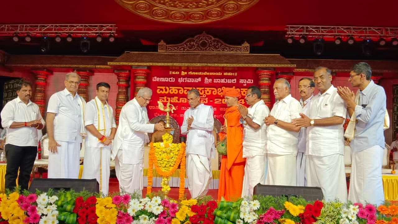 ವೇಣೂರಿನಲ್ಲಿ ಭಗವಾನ್ ಶ್ರೀಬಾಹುಬಲಿ ಸ್ವಾಮಿಗೆ 9 ದಿನಗಳ ಕಾಲ ನಡೆಯಲಿರುವ ಮಹಾಮಸ್ತಕಾಭಿಷೇಕ ಮಹೋತ್ಸವದ ಮೊದಲನೆ ದಿನವಾದ ಗುರುವಾರ ನಡೆದ ಧಾರ್ಮಿಕ ಸಭೆ ಮತ್ತು ಸಾಂಸ್ಕೃತಿಕ ಕಾರ್ಯಕ್ರಮಗಳ ಉದ್ಘಾಟನಾ ಸಮಾರಂಭದಲ್ಲಿ ಆಶೀರ್ವದಿಸಿದರು.