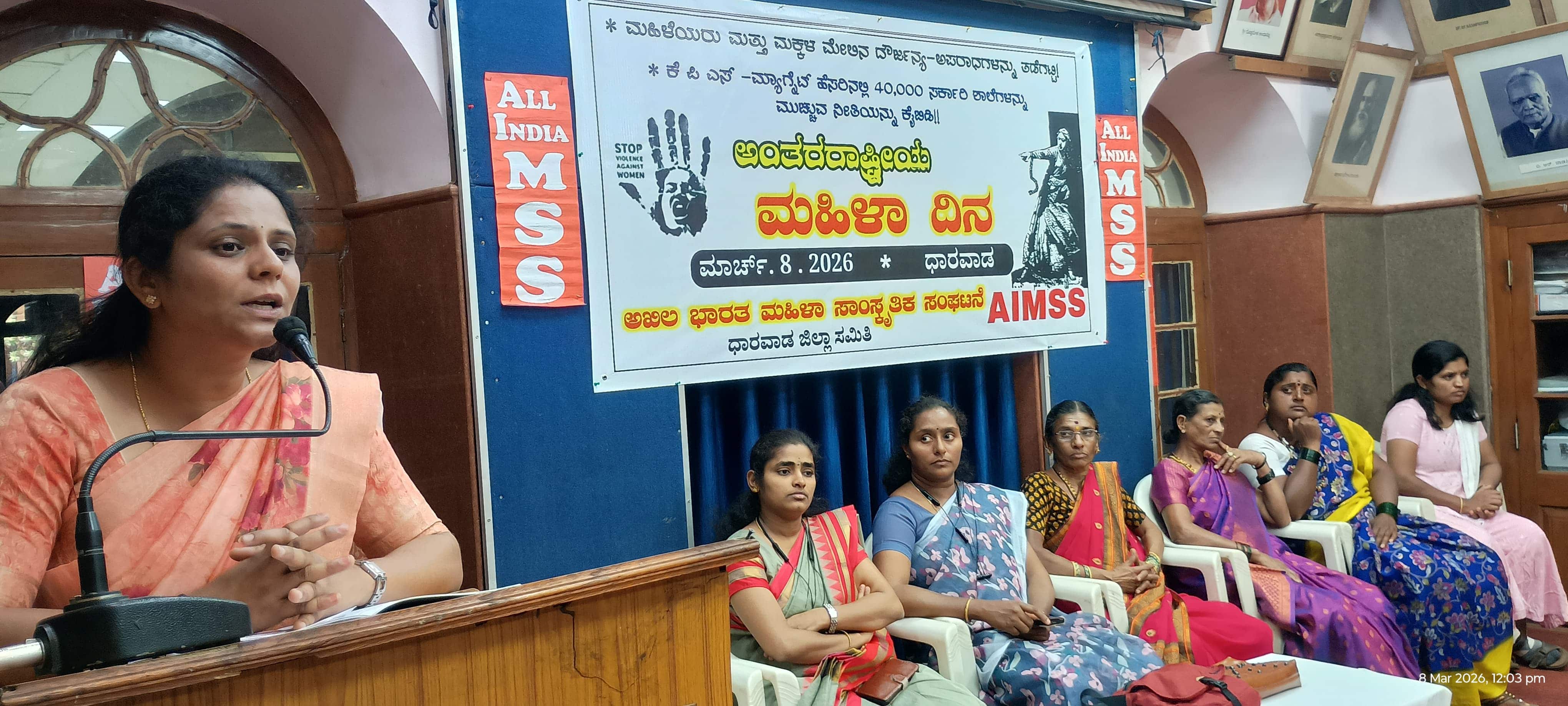 ಇಲ್ಲಿಯ ರಾ.ಹ. ದೇಶಪಾಂಡೆ ಸಭಾಭವನದಲ್ಲಿ ಭಾನುವಾರ ಆಯೋಜಿಸಿದ್ದ ''''''''ಅಂತಾರಾಷ್ಟ್ರೀಯ ಮಹಿಳಾ ದಿನಾಚರಣೆಯಲ್ಲಿ ಮಾತನಾಡಿದರು.ಮಹಿಳಾ ದಿನಾಚರಣೆ ಸಂಭ್ರಮದ ದಿನವಲ್ಲ. ಮಹಿಳೆಯರ ಮೇಲೆ ನಡೆಯುವ ವಿವಿಧ ದೌರ್ಜನ್ಯಗಳಿಗೆ ಕೊನೆಹಾಡಲು ಪಣತೊಡುವ ದಿನವಾಗಬೇಕು ಎಂದು ಪ್ರತಿಪಾದಿಸಿದರು.