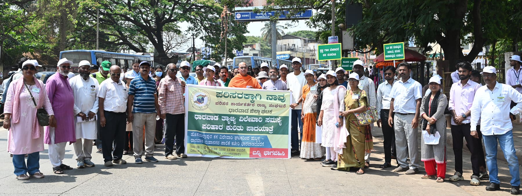 ಹೊಸಯಲ್ಲಾಪುರದ ತ್ಯಾಜ್ಯ ಘಟಕದ ಬೆಂಕಿ ಅನಾಹುತ ತಡೆಗಾಗಿ ಶಾಶ್ವತ ಪರಿಹಾರ ಕಲ್ಪಿಸುವಂತೆ ಒತ್ತಾಯಿಸಿ ಪರಿಸರಕ್ಕಾಗಿ ನಾವು ಸಂಘಟನೆಯ ನೇತೃತ್ವದಲ್ಲಿ ನೂರಾರು ಸಾರ್ವಜನಿಕರು ಮಂಗಳವಾರ ಬೃಹತ್ ಪಾದಯಾತ್ರೆ ನಡೆಸಿದರು.ಹೊಸಯಲ್ಲಾಪುರದ ತ್ಯಾಜ್ಯ ಘಟಕದಿಂದ ಪ್ರಾರಂಭವಾದ ಪಾದಯಾತ್ರೆ ನಗರದ ಬಾಗಲಕೋಟೆ ಪೆಟ್ರೋಲ್ ಪಂಪ್, ಕೋರ್ಟ್ ವೃತ್ತ, ಜ್ಯುಬ್ಲಿ ವೃತ್ತದ ಮೂಲಕ ಧಾರವಾಡ ಮಹಾನಗರ ಪಾಲಿಕೆ ಕಚೇರಿ ತಲುಪಿ, ಒಂದು ಗಂಟೆ ಕೆಲ ಕಾಲ ಪ್ರತಿಭಟಿಸಿದರು.