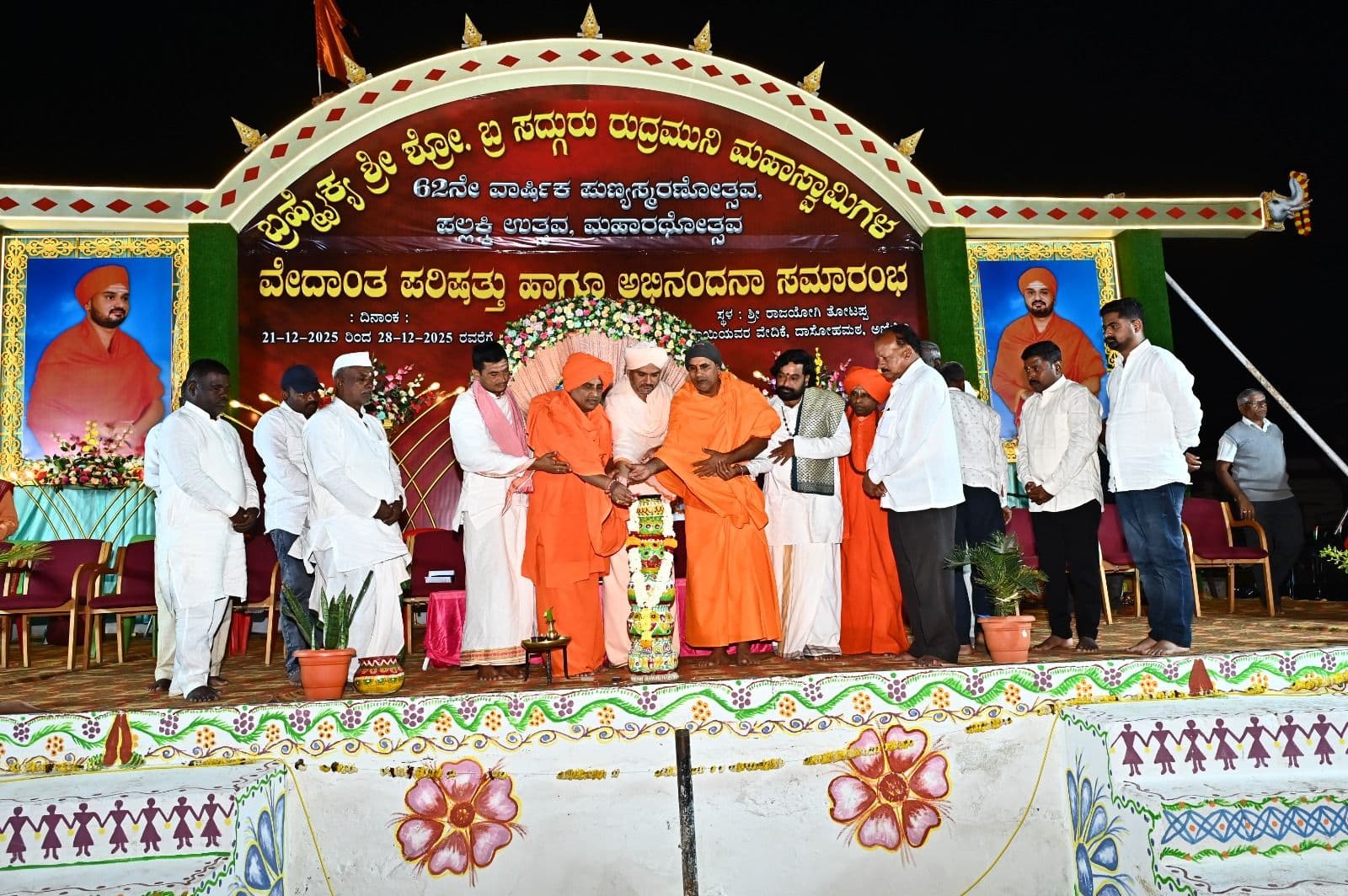 ಪಟ್ಟಣದ ದಾಸೋಹ ಮಠದಲ್ಲಿ ಹಮ್ಮಿಕೊಳ್ಳಲಾಗಿದ್ದ ಸದ್ಗುರು ರುದ್ರಮುನೀಶ್ವರ ಶ್ರೀಗಳ 62ನೇ ಪುಣ್ಯ ಸ್ಮರಣೋತ್ಸವ ಹಾಗೂ ವೇದಾಂತ ಪರಿಷತ್ ಸಮಾರಂಭದಲ್ಲಿ ಪಾಲ್ಗೊಂಡು ಮಾತನಾಡಿದರು.ಹುಬ್ಬಳ್ಳಿ ಶಾಂತಾಶ್ರಮದ ಅಭಿನವ ಸಿದ್ದಾರೂಢ ಶ್ರೀಗಳು ಮಾತನಾಡಿ, ಪ್ರತಿಯೊಬ್ಬ ಮನುಷ್ಯನ ಲೌಕಿಕ ಜೀವನದಲ್ಲಿ ಆಧ್ಯಾತ್ಮಿಕ ಆದರ್ಶ ಮೌಲ್ಯಗಳು ಅತ್ಯವಶ್ಯಕವಾಗಿವೆ. ಈ ಹಿನ್ನೆಲೆಯಲ್ಲಿ ಪ್ರತಿ ವರ್ಷ ಜಾತ್ರಾ ಮಹೋತ್ಸವದಲ್ಲಿ ಡಾ. ಶಿವಕುಮಾರ ಶ್ರೀಗಳು ಸಾವಿರಾರು ಭಕ್ತರನ್ನು ಸೇರಿಸಿ ಅವರಲ್ಲಿ ಜ್ಞಾನ ದಾಸೋಹ ಬಿತ್ತುವ ಕಾರ್ಯ ಕೈಗೊಂಡಿರುವುದು ಶ್ರೇಷ್ಠ ಕಾರ್ಯ ಎಂದರು.