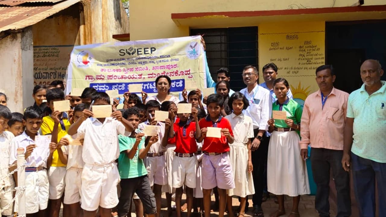 ಕನ್ನಡಪ್ರಭ ವಾರ್ತೆ ಖಾನಾಪುರ: ತಾಲೂಕಿನ ಮಂಗೇನಕೊಪ್ಪ ಗ್ರಾಮದ ಡಿಜಿಟಲ್ ಗ್ರಂಥಾಲಯದಲ್ಲಿ ಶನಿವಾರ ಮತದಾನ ಜಾಗೃತಿಗಾಗಿ ಶಾಲಾ ಮಕ್ಕಳಿಂದ ಪತ್ರ ಚಳವಳಿ ಕಾರ್ಯಕ್ರಮ ಜರುಗಿತು. ತಾಪಂ ಕಾರ್ಯನಿರ್ವಾಹಕ ಅಧಿಕಾರಿ ಭಾಗ್ಯಶ್ರೀ ಜಹಾಗೀರದಾರ ಪತ್ರ ಚಳವಳಿ ಕಾರ್ಯಕ್ರಮಕ್ಕೆ ಚಾಲನೆ ನೀಡಿದರು. ಬಳಿಕ ಮಕ್ಕಳಿಗೆ ಮತದಾನ ಮಹತ್ವ ವಿವರಿಸಿ ಪಾಲಕರಿಗೂ ಮತದಾನ ಮಾಡುವಂತೆ ತಿಳಿ ಹೇಳುವಂತೆ ಸೂಚಿಸಿದರು.