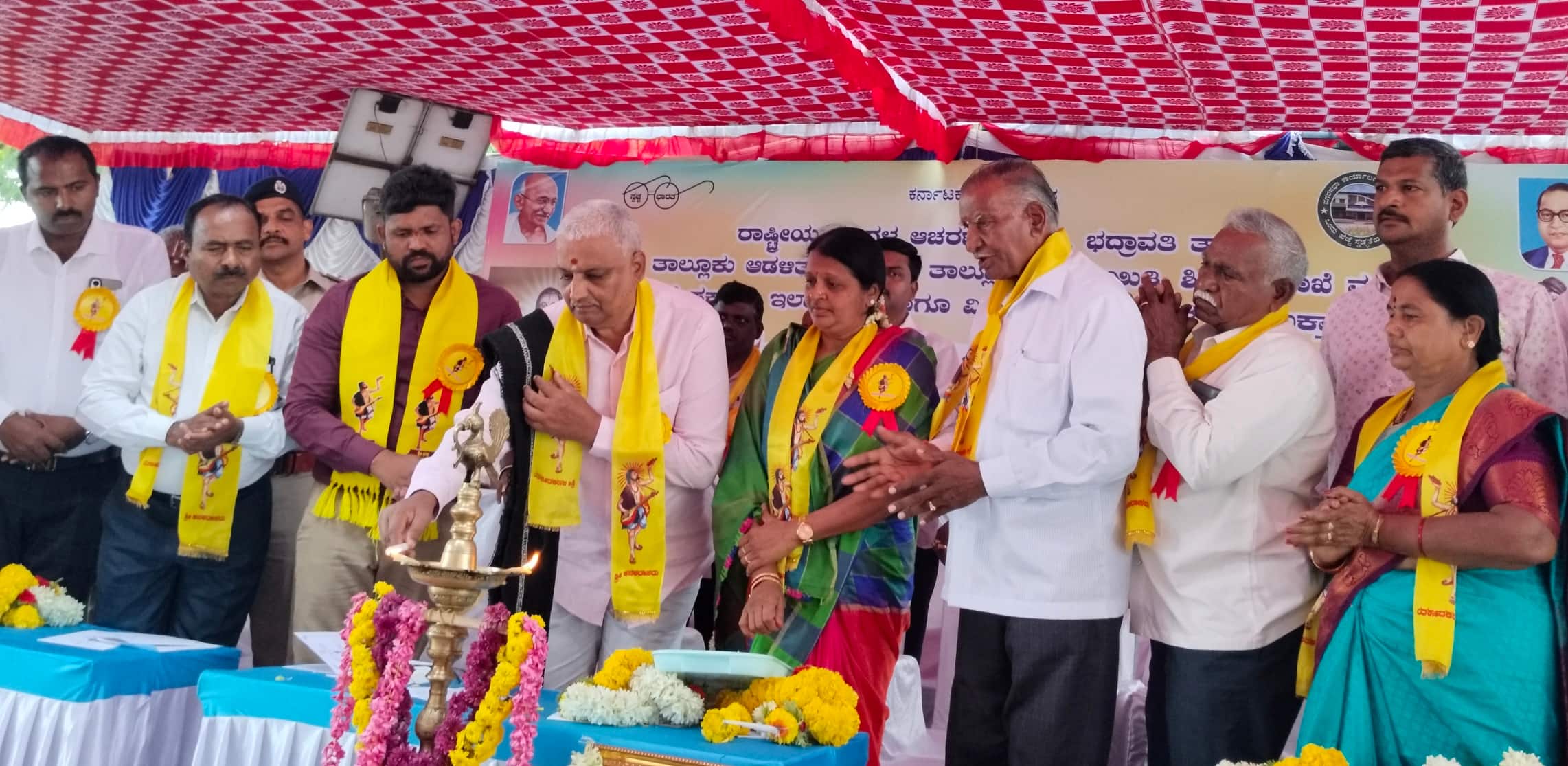 ವೇದಿಕೆಯಲ್ಲಿ ನಗರಸಭೆ ಅಧ್ಯಕ್ಷೆ ಗೀತಾ ರಾಜಕುಮಾರ್, ಉಪಾಧ್ಯಕ್ಷ ಮಣಿ ಎಎನ್ಎಸ್, ಸ್ಥಾಯಿ ಸಮಿತಿ ಅಧ್ಯಕ್ಷ ಸೈಯದ್ ರಿಯಾಜ್, ಪೌರಾಯುಕ್ತ ಕೆ.ಎನ್ ಹೇಮಂತ್, ನಗರ ಆಶ್ರಯ ಸಮಿತಿ ಅಧ್ಯಕ್ಷ ಬಿ.ಎಸ್ ಗೋಪಾಲ, ರಾಷ್ಟ್ರೀಯ ಹಬ್ಬಗಳ ಆಚರಣಾ ಸಮಿತಿ ಅಧ್ಯಕ್ಷ, ತಹಸೀಲ್ದಾರ್ ಪರುಸಪ್ಪ ಕುರುಬರ, ನಗರಸಭೆ ಸದಸ್ಯರಾದ ಮಂಜುಳಾ ಸುಬ್ಬಣ್ಣ, ಅನಿತಾ ಮಲ್ಲೇಶ್, ಕಾಂತರಾಜ್, ಕೆ. ಸುದೀಪ್ ಕುಮಾರ್, ಹನುಮಂತಪ್ಪ, ಪಂಚ ಗ್ಯಾರಂಟಿ ಯೋಜನೆಗಳ ಅನುಷ್ಠಾನ ಪ್ರಾಧಿಕಾರದ ತಾಲೂಕು ಅಧ್ಯಕ್ಷ ಬಿ.ಎಸ್ ಗಣೇಶ್, ಹಿರಿಯ ಪತ್ರಕರ್ತ ಕಣ್ಣಪ್ಪ, ಸಮಾಜದ ಪ್ರಮುಖರಾದ ಹಾ. ರಾಮಪ್ಪ, ಕರಿಯಪ್ಪ, ಗ್ಯಾಮಣ್ಣ, ಹೇಮಾವತಿ ಶಿವಾನಂದ್, ಉಮೇಶ್, ಕೇಸರಿಪಡೆ ಗಿರೀಶ್, ಮಹಾದೇವಣ್ಣ, ಎಸ್. ಮಂಜುನಾಥ್, ಮಾಲಾ ಗೌಡ ಸೇರಿದಂತೆ ಇನ್ನಿತರರು ಉಪಸ್ಥಿತರಿದ್ದರು.ರಾಜ್ಯ ಸರ್ಕಾರಿ ನೌಕರರ ಸಂಘದ ತಾಲೂಕು ಅಧ್ಯಕ್ಷ ಬಿ. ಸಿದ್ದಬಸಪ್ಪ ನಿರೂಪಿಸಿ, ಅಭಿಲಾಷ್ ಸ್ವಾಗತಿಸಿದರು. ಕ್ಷೇತ್ರ ಶಿಕ್ಷಣಾಧಿಕಾರಿ ಎ.ಕೆ ನಾಗೇಂದ್ರಪ್ಪ ಪ್ರಾಸ್ತಾವಿಕ ನುಡಿಗಳನ್ನಾಡಿದರು.