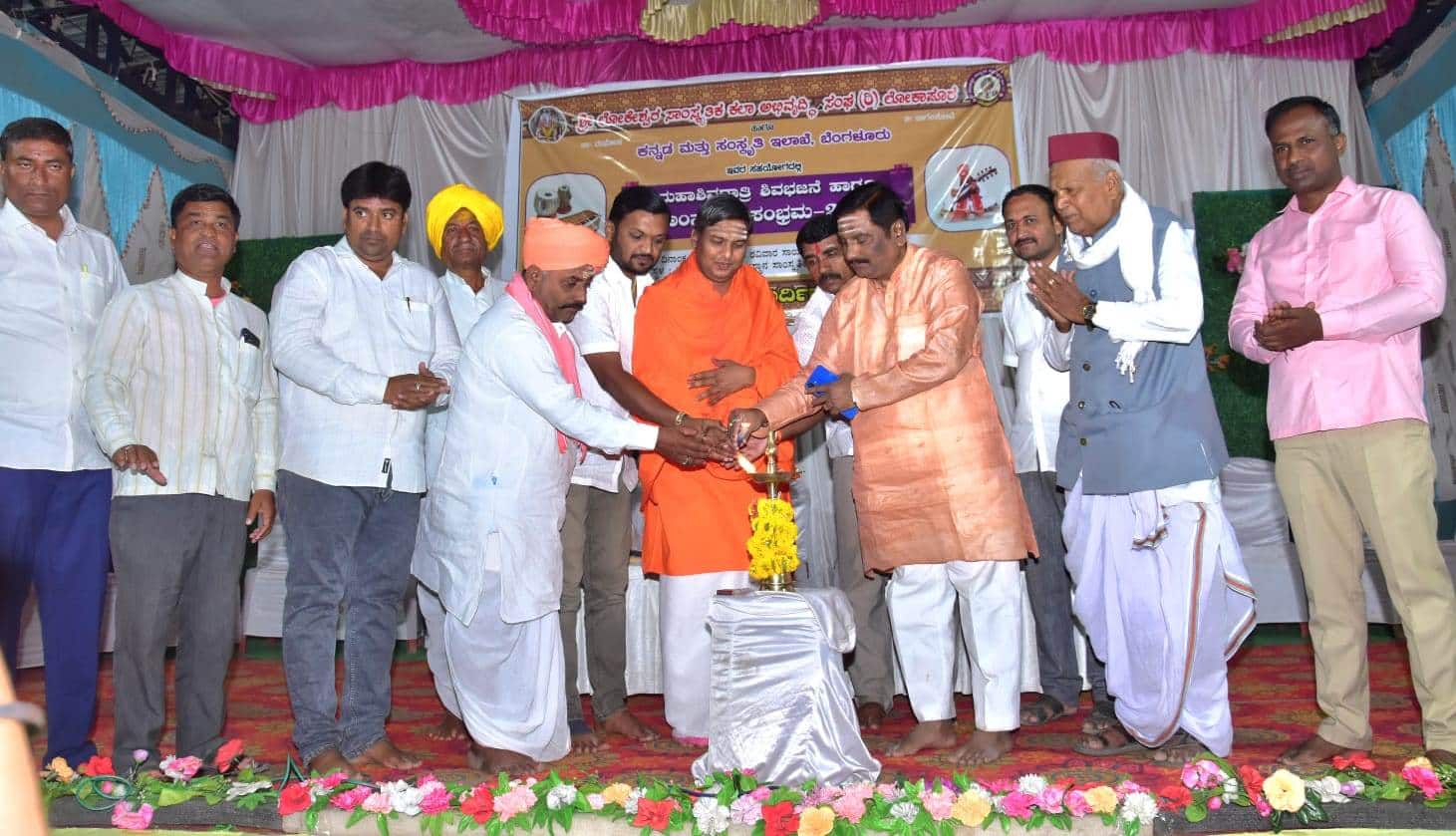 ಲೋಕೇಶ್ವರ ದೇವಸ್ಥಾನ ಅರ್ಚಕ ಚನ್ನಯ್ಯಾ ಗಣಾಚಾರಿ ಸಾನ್ನಿಧ್ಯ ವಹಿಸಿದ್ದರು. ರಾಜ್ಯೋತ್ಸವ ಪ್ರಶಸ್ತಿ ಪುರಸ್ಕೃತರಾದ ಮಲ್ಲಿಕಾರ್ಜುನ ಮುದಕವಿ, ಪ್ರಕಾಶ ಚುಳಕಿ, ಪ್ರಮೋದ ತೆಗ್ಗಿ, ಪ್ರವೀಣ ಗಂಗಣ್ಣವರ, ಗೋಪಾಲ ಮೂಲಿಮನಿ, ಸೈಯದ್ ನದಾಫ್, ಸುರೇಶ ಬನೋಜಿ, ಮಹೇಶ ಹುಗ್ಗಿ, ಗುಣಾಕರ ಶೆಟ್ಟಿ, ಶಿವಾನಂದ ನರಗುಂದ, ಡಾ.ಲೋಕಣ್ಣ ಭಜಂತ್ರಿ, ಸಂಸ್ಥೆ ಅಧ್ಯಕ್ಷ ಹಾಗೂ ಕಲಾವಿದ ಕೃಷ್ಣಾ ಭಜಂತ್ರಿ, ಕಲಾವಿದರು, ಕಲಾ ಪ್ರೇಕ್ಷರು ಇದ್ದರು. ಕೆ.ಪಿ. ಯಾದವಾಡ ಕಾರ್ಯಕ್ರಮ ನಿರೂಪಿಸಿದರು.