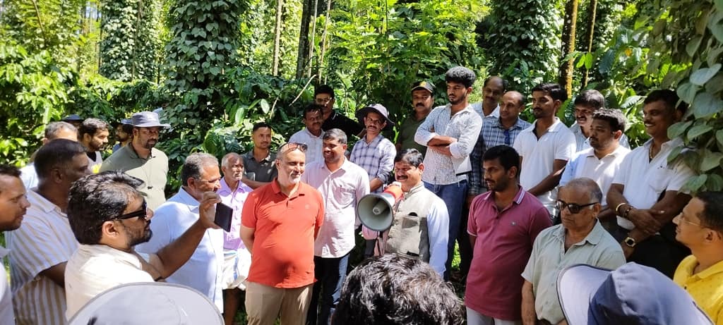 ಕಾಫಿ ಬೆಳೆಗಾರ, ಬೇಲೂರು೦೯ಬಿಎಚ್ಆರ್ ೧:ಬಾಳೆಹೊನ್ನೂರು ಸಮೀಪದ ಕೆಳಕೊಡಿಗೆ ಶ್ರೀನಿವಾಸ್ರಾವ್ ಅವರ ಕೃಷಿ ಕ್ಷೇತ್ರದಲ್ಲಿ ಕಾಳುಮೆಣಸು ಬೆಳೆ ಕಾರ್ಯಾಗಾರ ನಡೆಯಿತು.
