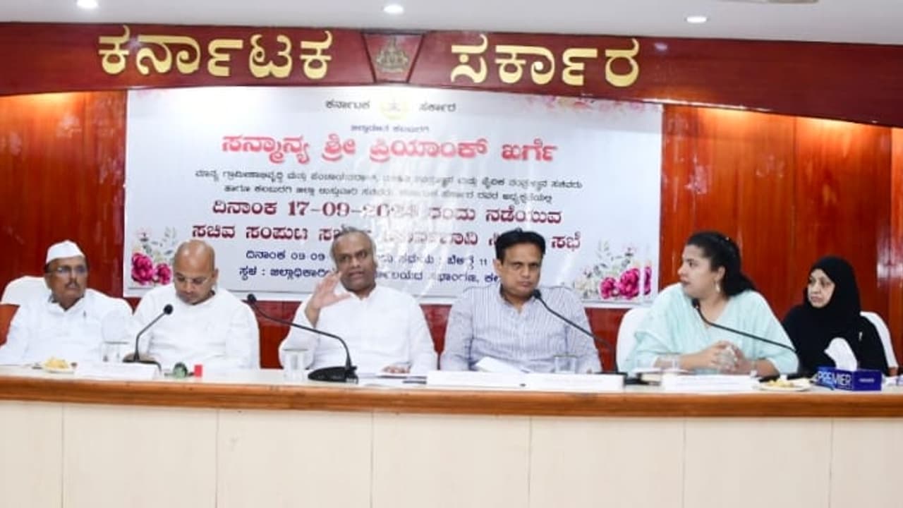ದಶಕಗಳ ಬಳಿಕ ಕಲಬುರಗಿಯಲ್ಲಿ ಸೆ.17ರಂದು ಮುಖ್ಯಮಂತ್ರಿ ಸಿದ್ದರಾಮಯ್ಯ ಅಧ್ಯಕ್ಷತೆಯಲ್ಲಿ ಸಚಿವ ಸಂಪುಟ ಸಭೆ ನಡೆಯಲಿದ್ದು, ಸರ್ಕಾರದ ಹಂತದಲ್ಲಿ ಪ್ರದೇಶದ ವಿವಿಧ ಅಭಿವೃದ್ಧಿ ಕಾಮಗಾರಿಗಳ ಪ್ರಸ್ತಾವನೆ ಬಾಕಿ ಇದ್ದಲ್ಲಿ ಇಂದೇ ಡಿಸಿಗೆ ಸಲ್ಲಿಸಬೇಕು ಎಂದು ಕಲಬುರಗಿ ಜಿಲ್ಲಾ ಉಸ್ತುವಾರಿ ಸಚಿವ ಪ್ರಿಯಾಂಕ್ ಖರ್ಗೆ ಅಧಿಕಾರಿಗಳಿಗೆ ಸೂಚನೆ ನೀಡಿದರು.ಸೋಮವಾರ ಇಲ್ಲಿನ ಜಿಲ್ಲಾಧಿಕಾರಿಗಳ ಕಚೇರಿ ಸಭಾಂಗಣದಲ್ಲಿ ಸಚಿವ ಸಂಪುಟ ಸಭೆ ಹಿನ್ನೆಲೆಯಲ್ಲಿ ಜಿಲ್ಲೆಯ ಶಾಸಕ-ಸಂಸದರು ಹಾಗೂ ಅಧಿಕಾರಿಗಳ ಸಭೆ ಅಧ್ಯಕ್ಷತೆ ವಹಿಸಿ ಮಾತನಾಡಿದ ಅವರು, ಸಂಪುಟ ಸಭೆ ಕಲಬುರಗಿಯಲ್ಲಿ ನಡೆಯುತ್ತಿರುವುದರಿಂದ ಈ ಭಾಗದ ಪ್ರಸ್ತಾವನೆಗಳ ಅನುಮೋದನೆ ನೀಡಲು ಸರ್ಕಾರ ಉತ್ಸುಕವಾಗಿದೆ. ಪ್ರದೇಶದ ಅಭಿವೃದ್ಧಿಗೂ ಈ ಸಭೆ ಸುವರ್ಣಾವಕಾಶವಾಗಿದೆ ಎಂದರು.