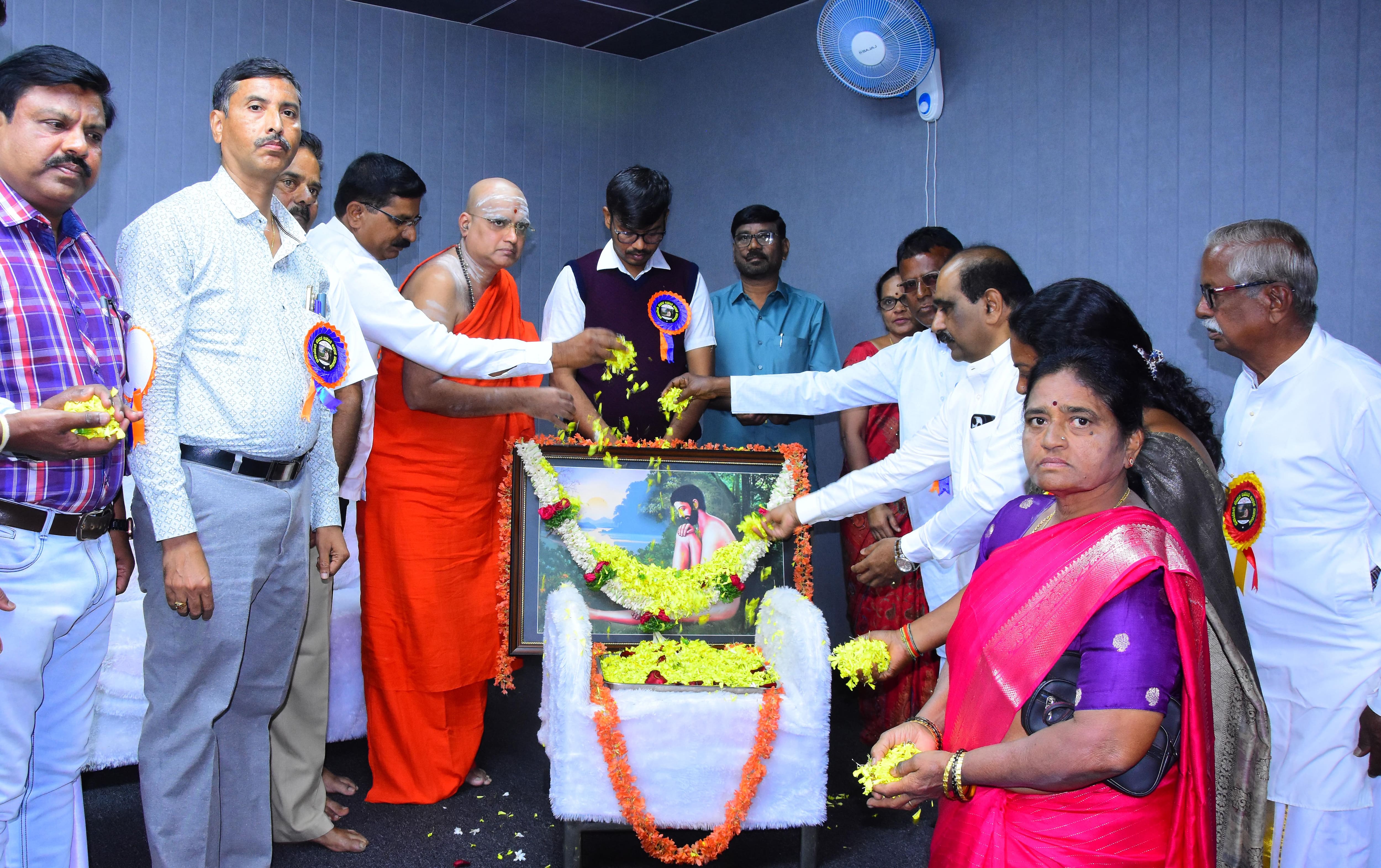 ಚಿತ್ರದುರ್ಗದ ಪತ್ರಕರ್ತರ ಭವನದಲ್ಲಿ ಸೋಮವಾರ ನಡೆದ ಯೋಗಿ ವೇಮನ ಜಯಂತಿ ಆಚರಣೆಯಲ್ಲಿಹೊಸಹಳ್ಳಿಯ ರೆಡ್ಡಿ ಗುರುಪೀಠದ ವೇಮನಾನಂದ ಸ್ವಾಮಿಗಳು ಭಾವಚಿತ್ರಕ್ಕೆ ಪುಷ್ಪ ನಮನ ಸಲ್ಲಿಸಿದರು.