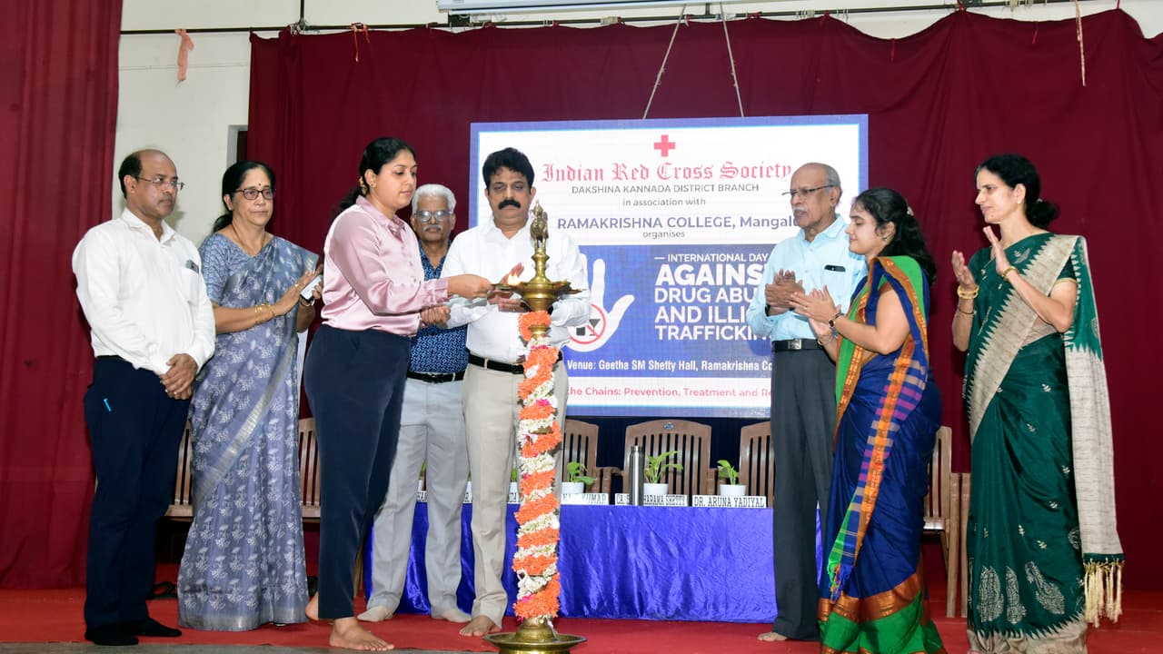 ಭಾರತೀಯ ರೆಡ್ಕ್ರಾಸ್ ಸಂಸ್ಥೆಯ ದ.ಕ.ಜಿಲ್ಲಾ ಘಟಕದ ವತಿಯಿಂದ ರಾಮಕೃಷ್ಣ ಕಾಲೇಜು ಸಹಯೋಗದಲ್ಲಿ ಇತ್ತೀಚೆಗೆ ಬಂಟ್ಸ್ ಹಾಸ್ಟೆಲ್ನ ಗೀತಾ ಎಸ್.ಎಂ.ಶೆಟ್ಟಿ ಸಭಾಂಗಣದಲ್ಲಿ ಅಂತಾರಾಷ್ಟ್ರೀಯ ಮಾದಕ ದ್ರವ್ಯ ಮತ್ತು ಅಕ್ರಮ ಸಾಗಾಟ ವಿರೋಧಿ ದಿನಾಚರಣೆ ನೆರವೇರಿತು.