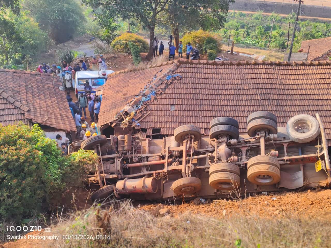 ಲಾರಿ ಪಲ್ಟಿಯಾಗಿ ಕೆಳಗೂರು ಟೀ ಎಸ್ಟೇಟ್ ಕೂಲಿ ಲೈನ್ ಒಂದು ಭಾಗಕ್ಕೆ ಹಾನಿಯಾಗಿದೆ. ಲಾರಿ ಇನ್ನೊಂದು ಪಲ್ಟಿ ಯಾಗಿದ್ದರೆ ದೊಡ್ಡ ಮಟ್ಟದ ಅನಾಹುತವಾಗುತ್ತಿತ್ತು. ಲಾರಿ ಮಕಾಡೆ ಬಿದ್ದಿದ್ದು, ಕೇವಲ ಚಕ್ರಗಳೂ ಮಾತ್ರ ಮೇಲೆ ಕಾಣುತ್ತಿವೆ.ಲಾರಿಯಲ್ಲಿ ಚಿಕ್ಕಮಗಳೂರಿನಿಂದ ಹಿರೇಬೈಲಿಗೆ ಸಿಮೆಂಟ್ ಲೋಡ್ ತರಲಾಗುತ್ತಿತ್ತು. ಸ್ಥಳೀಯರು ಮತ್ತು ಪೊಲೀಸರು, ಅಗ್ನಿಶಾಮಕ ಸಿಬ್ಬಂದಿ ಕಾರ್ಯಾಚರಣೆ ನಡೆಸಿ ಸಿಮೆಂಟ್ ಲೋಡ್ ಮಾಡುವ ಮೂವರು ಕಾರ್ಮಿಕರನ್ನು ರಕ್ಷಿಸಲಾಗಿದೆ.