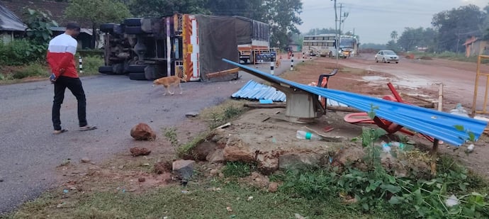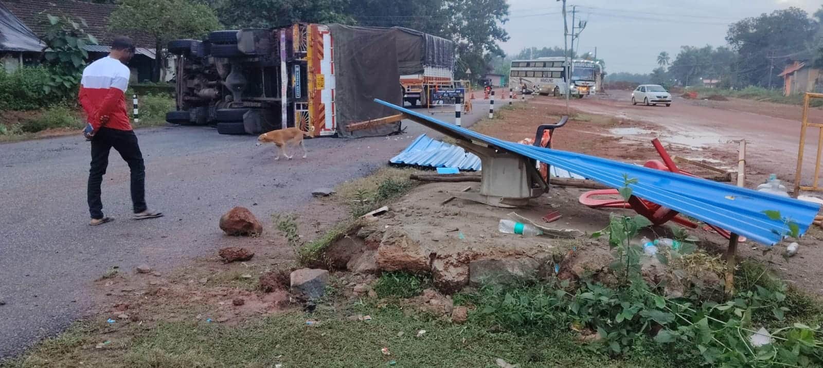 ಪೊಲೀಸ್ ಚೆಕ್ಪೋಸ್ಟ್ ಮೇಲೆ ಲಾರಿ ಬಿದ್ದು ಅದೃಷ್ಟಶವಶಾತ್ ಪೊಲೀಸ್ ಸಿಬ್ಬಂದಿ ಜೀವಾಪಾಯದಿಂದ ಪಾರಾದ ಘಟನೆ ಹಿರೇಗುತ್ತಿಯಲ್ಲಿ ಗುರುವಾರ ಬೆಳಗಿನ ಜಾವ ನಡೆದಿದೆ.ಈ ಹಿಂದೆ ಸಂಚಾರಿ ಪೊಲೀಸ್ ಠಾಣೆಯಾಗಿ ಕಾರ್ಯನಿರ್ವಹಿಸುತ್ತಿದ್ದ ಕಚೇರಿಯನ್ನ ರಾಷ್ಟ್ರೀಯ ಹೆದ್ದಾರಿ ಅಗಲೀಕರಣದಿಂದ ತೆರವು ಮಾಡಲಾಗಿತ್ತು. ನಂತರ ಸಿಬ್ಬಂದಿಗೆ ಕಾರ್ಯನಿರ್ವಹಿಸಲು ಅರೆಬರೆಯಾದ ಚತುಷ್ಪಥ ರಸ್ತೆಯ ಮಧ್ಯದಲ್ಲಿ ತಾತ್ಕಾಲಿಕ ತಗಡಿನ ಶೆಡ್ ನಿರ್ಮಿಸಿಕೊಡಲಾಗಿತ್ತು. ಇಲ್ಲಿಯೇ ಕುಳಿತು ವಾಹನ ತಪಾಸಣೆ ಹಾಗೂ ಸಂಚಾರ ದಟ್ಟಣೆಯ ನಿಗಾ ವಹಿಸಲಾಗುತ್ತಿತ್ತು. ಬುಧವಾರ ರಾತ್ರಿ ೧.೩೦ಸುಮಾರಿಗೆ ಅಂಕೋಲಾದಿಂದ ಕುಮಟಾ ಕಡೆ ತೆರಳುತ್ತಿದ್ದ ಸರಕು ತುಂಬಿದ ಲಾರಿ ನಿಯಂತ್ರಣ ತಪ್ಪಿ ಶೆಡ್ ಹತ್ತಿರ ನುಗ್ಗಿದ್ದು, ತಕ್ಷಣ ಎಚ್ಚೆತ್ತುಗೊಂಡ ಕರ್ತವ್ಯದಲ್ಲಿದ್ದ ಸಿಬ್ಬಂದಿ ತಪ್ಪಿಸಿಕೊಂಡಿದ್ದು, ಸಣ್ಣ, ಪುಟ್ಟ ಗಾಯಗಳಾಗಿದ್ದು, ಜೀವ ಉಳಿಸಿಕೊಂಡಿದ್ದಾರೆ. ಸ್ಥಳಕೆ ಪಿಐ ಶ್ರೀಧರ ಭೇಟಿ ನೀಡಿ ಪರಿಶೀಲನೆ ನಡೆಸಿದ್ದಾರೆ.