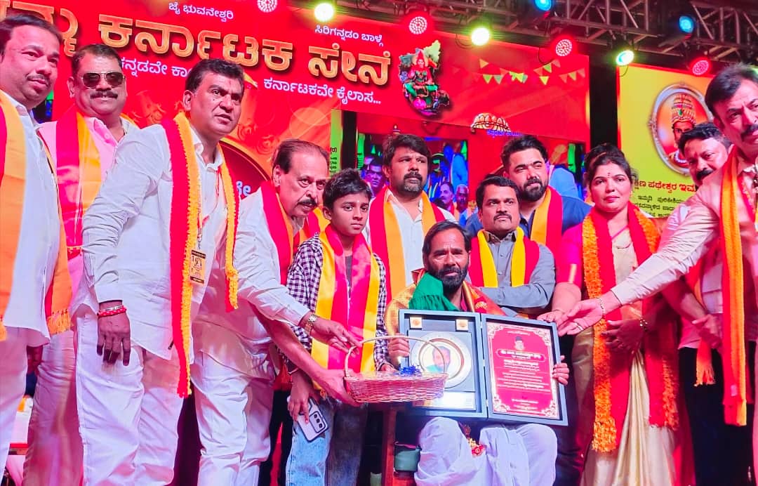 ಕರ್ನಾಟಕ ಸೇನೆ ಸಂಘಟನೆಯಿಂದ ಹಿರಿಯ ರೈತ ಹೋರಾಟಗಾರ ಹಾಗೂ ಕರ್ನಾಟಕ ರಾಜ್ಯ ರೈತ ಸಂಘದ ರಾಜ್ಯ ಉಪಾಧ್ಯಕ್ಷ ಮಲ್ಲಿಕಾರ್ಜುನ ಸತ್ಯಂಪೇಟೆ ಅವರಿಗೆ ಪ್ರೊ. ಎಂ.ಡಿ ನಂಜುಂಡಸ್ವಾಮಿ ಪ್ರಶಸ್ತಿ ನೀಡಿ ಗೌರವಿಸಲಾಗಿದೆ.ಸಂಘದ ಮೂರನೇ ವಾರ್ಷಿಕೋತ್ಸವದ ಅಂಗವಾಗಿ ಬೆಂಗಳೂರಿನ ಅರಮನೆ ಮೈದಾನದಲ್ಲಿ ಹಮ್ಮಿಕೊಳ್ಳಲಾಗಿದ್ದ ಸಮಾವೇಶದಲ್ಲಿ ಪ್ರಶಸ್ತಿ ನೀಡಿ ಸನ್ಮಾನಿಸಿ ಗೌರವಿಸಲಾಯಿತು. ಕಾರ್ಯಕ್ರಮದಲ್ಲಿ ಮಾಜಿ ಸಚಿವ ಹಾಗೂ ಬಿಜೆಪಿ ರಾಜ್ಯ ಉಪಾಧ್ಯಕ್ಷ ನರಸಿಂಹ ನಾಯಕ ರಾಜುಗೌಡ, ಸಂಘದ ರಾಜ್ಯಾಧ್ಯಕ್ಷ ಬಸವರಾಜ ಪಡುಕೋಟೆ, ಡಾ. ರಾಜಕುಮಾರ ಅಭಿಮಾನಿಗಳ ಸಂಘದ ರಾಜ್ಯಾಧ್ಯಕ್ಷ ಸಾ.ರಾ ಗೋವಿಂದ, ಮಾಜಿ ಸಚಿವ ಅರವಿಂದ ಲಿಂಬಾವಳಿ, ಶಾಸಕ ಅಶ್ವತ್ಥನಾರಾಯಣ, ಎನ್. ಎ. ಹ್ಯಾರಿಸ್, ಡಿಎಸ್ ಮ್ಯಾಕ್ಸ್ ನಿರ್ದೇಶಕ ದಯಾನಂದ್, ಕನ್ನಡಪ್ರಭ ಪ್ರಧಾನ ಸಂಪಾದಕರಾದ ರವಿ ಹೆಗಡೆ, ಚಲನಚಿತ್ರ ನಿರ್ದೇಶಕ ತರುಣ ಸುಧೀರ್, ಶರಣ ಸಾಹಿತ್ಯ ಪರಿಷತ್ತಿನ ಯುವ ಘಟಕದ ರಾಜ್ಯ ಸಂಚಾಲಕ ಪ್ರಕಾಶ ಅಂಗಡಿ ಕನ್ನೆಳ್ಳಿ, ಸಂಘಟನೆಯ ರಾಜ್ಯ ಯುವ ಘಟಕದ ಅಧ್ಯಕ್ಷ ರಘು ಪಡುಕೋಟೆ ಸೇರಿದಂತೆ ಅನೇಕರು ಉಪಸ್ಥಿತರಿದ್ದರು.