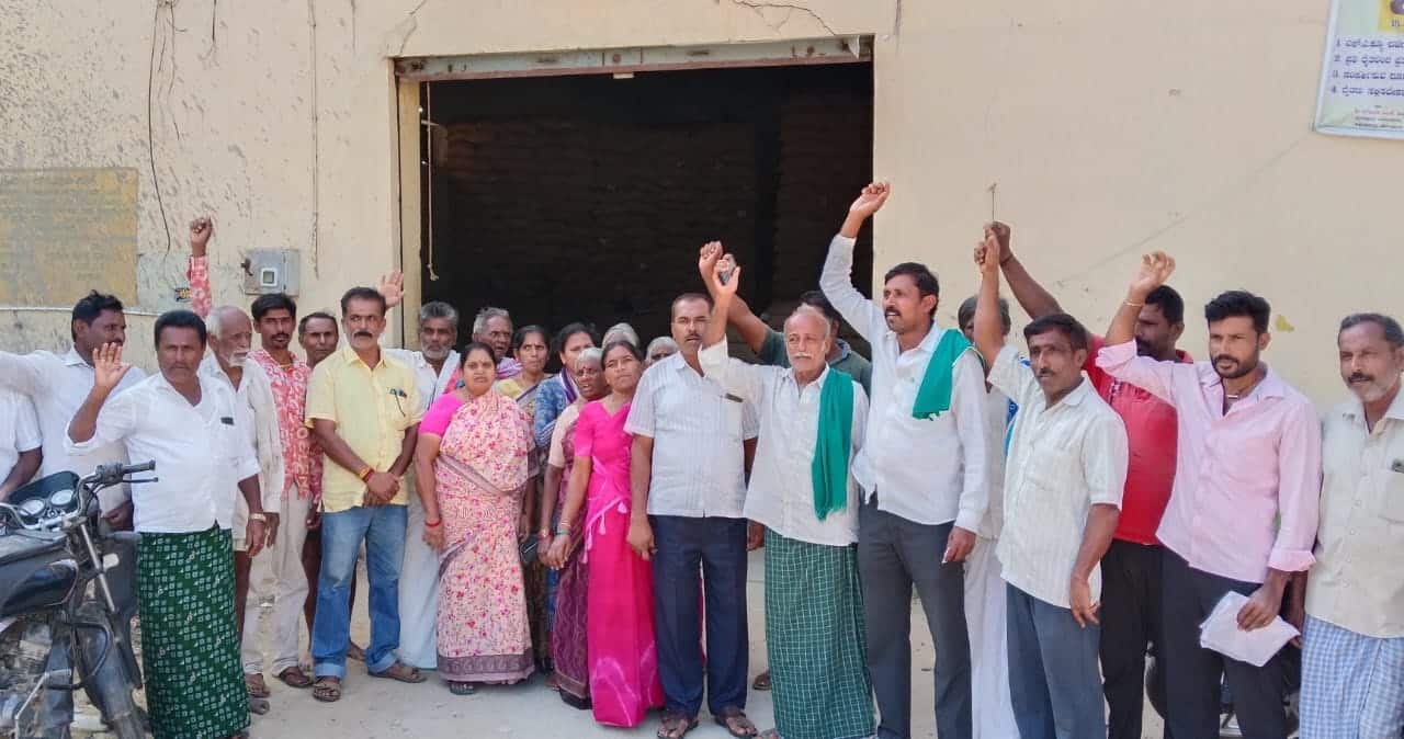 ರಾಗಿ ಖರೀದಿ ಕೇಂದ್ರ ಸ್ಥಗಿತ ಗೊಳಿಸಿರುವ ಸರ್ಕಾರದ ಕ್ರಮ ವಿರೋಧಿಸಿ ರೈತರು ಸೋಮವಾರ ಆಹಾರ ಮತ್ತು ನಾಗರಿಕ ಸರಬರಾಜು ನಿಗಮದ ಗೋದಾಮಿಗೆ ಮುತ್ತಿಗೆ ಹಾಕಿ ಪ್ರತಿಭಟನೆ ನಡೆಸಿದರು.ರೈತ ಸಂಘದ ತಾಲೂಕು ಘಟಕದ ಅಧ್ಯಕ್ಷ ವಿ.ಸಿ.ಉಮೇಶ್ ನೇತೃತ್ವದಲ್ಲಿ ವಳಗೆರೆಹಳ್ಳಿ, ಹೆಮ್ಮನಹಳ್ಳಿ, ಯಡಗನಹಳ್ಳಿ, ಕಳ್ಳಿ ಮೇಳ ದೊಡ್ಡಿ, ಹುಲಿಗೆರೆಪುರ ಹಾಗೂ ದೇವರಹಳ್ಳಿ ಗ್ರಾಮಗಳಿಂದ ಆಗಮಿಸಿದ್ದ ರೈತರು ದಿಢೀರ್ ಪ್ರತಿಭಟನೆ ನಡೆಸಿ ಸೋಮವಾರದಿಂದ ರಾಗಿ ಖರೀದಿ ಕೇಂದ್ರ ಸ್ಥಗಿತಗೊಳಿಸಿರುವುದನ್ನು ತೀವ್ರವಾಗಿ ಖಂಡಿಸಿದರು.