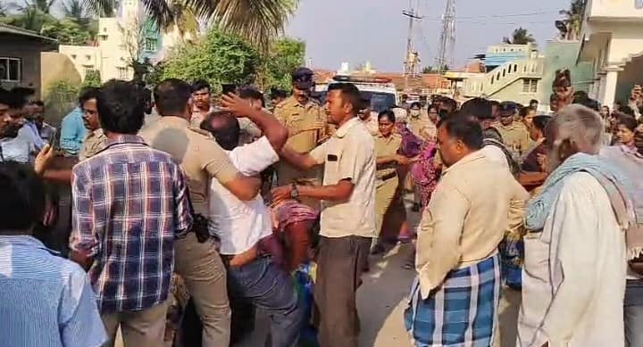 ನಂತರ ಪೊಲೀಸರು ರಸ್ತೆತಡೆ ನಡೆಸಿದ ಆರೋಪದ ಮೇಲೆ ಗ್ರಾಮದ ಮುಖಂಡರಾದ ಪ್ರಸನ್ನ, ಮಹೇಶ್ , ನಾಗಣ್ಣ ಸೇರಿದಂತೆ ಹಲವರನ್ನು ಬಂಧಿಸಿ ಕರೆದೊಯ್ದರು. ಬಂಧಿತರನ್ನು ಬಿಡುಗಡೆ ಮಾಡುವವರೆಗೂ ಪ್ರತಿಭಟನೆ ಹಿಂಪಡೆಯಲ್ಲ ಎಂದು ಗ್ರಾಮಸ್ಥರು ಪಟ್ಟು ಹಿಡಿದರು.ನಂತರ ಸ್ಥಳಕ್ಕೆ ಧಾವಿಸಿದ ಮಾಜಿ ಸಚಿವ ಡಿ.ಸಿ.ತಮ್ಮಣ್ಣ, ರೈತ ನಾಯಕಿ ಸುನಂದಾ ಜಯರಾಂ, ಬಿಜೆಪಿ ಮುಖಂಡ ಎಸ್.ಪಿ.ಸ್ವಾಮಿ ಧರಣಿನಿರತರೊಂದಿಗೆ ಮಾತುಕತೆ ನಡೆಸಿದರು. ನಂತರ ಪೊಲೀಸರನ್ನು ತರಾಟೆ ತೆಗೆದುಕೊಂಡರು.