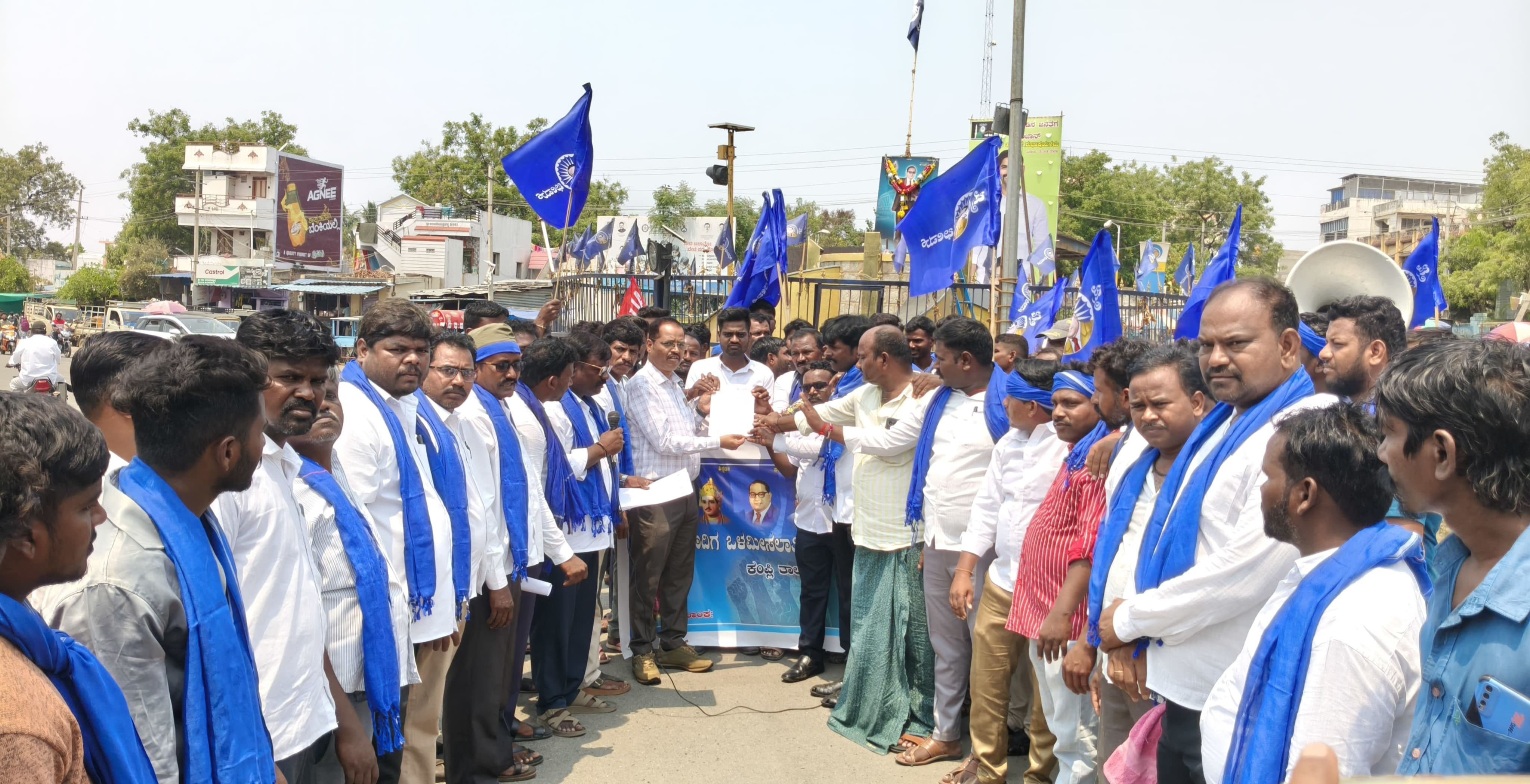 ಒಳ ಮೀಸಲಾತಿ ಜಾರಿಗೆ ಒತ್ತಾಯಿಸಿ ಬುಧವಾರ ಪಟ್ಟಣದ ಅಂಬೇಡ್ಕರ್ ವೃತ್ತದಲ್ಲಿ ಮಾದಿಗ ಸಮುದಾಯದ ಮುಖಂಡರು ಹಾಗೂ ಕಾರ್ಯಕರ್ತರು ಹಮ್ಮಿಕೊಂಡಿದ್ದ ಪ್ರತಿಭಟನೆಯಲ್ಲಿ ಮಾತನಾಡಿದರುಕಳೆದ 35 ವರ್ಷಗಳಿಂದಲೂ ಮಾದಿಗ ಸಮುದಾಯ ಒಳ ಮೀಸಲಾತಿಗಾಗಿ ಹೋರಾಟ ನಡೆಸುತ್ತಿದೆ. ಆದರೆ, ಇಷ್ಟು ವರ್ಷಗಳಾದರೂ ನಮ್ಮ ಬೇಡಿಕೆ ಈಡೇರದಿರುವುದು ವಿಷಾದನೀಯ. ಸುಪ್ರೀಂಕೋರ್ಟ್ ಒಳ ಮೀಸಲಾತಿಗೆ ಸಂಬಂಧಿಸಿದಂತೆ ಸ್ಪಷ್ಟ ತೀರ್ಪು ನೀಡಿದ್ದರೂ, ರಾಜ್ಯ ಸರ್ಕಾರ ಅದನ್ನು ಜಾರಿಗೊಳಿಸುವಲ್ಲಿ ವಿಳಂಬ ಮಾಡುತ್ತಿರುವುದು ನ್ಯಾಯಸಮ್ಮತವಲ್ಲ. ಸಾಮಾಜಿಕ ನ್ಯಾಯದ ಹಿತದೃಷ್ಟಿಯಿಂದ ಮಾದಿಗ ಹಾಗೂ ಸಂಬಂಧಿತ ಉಪವರ್ಗಗಳಿಗೆ ಶೇ. 6ರಷ್ಟು ಒಳ ಮೀಸಲಾತಿಯನ್ನು ಕೂಡಲೇ ಜಾರಿಗೊಳಿಸಬೇಕು. ಇದು ನಮ್ಮ ಹಕ್ಕು ಮತ್ತು ದೀರ್ಘಕಾಲದ ಬೇಡಿಕೆ. ಸರ್ಕಾರ ಇನ್ನಷ್ಟು ವಿಳಂಬ ಮಾಡಿದರೆ ಹೋರಾಟವನ್ನು ಮತ್ತಷ್ಟು ತೀವ್ರಗೊಳಿಸಲಾಗುತ್ತದೆ ಎಂದು ಎಚ್ಚರಿಸಿದರು.