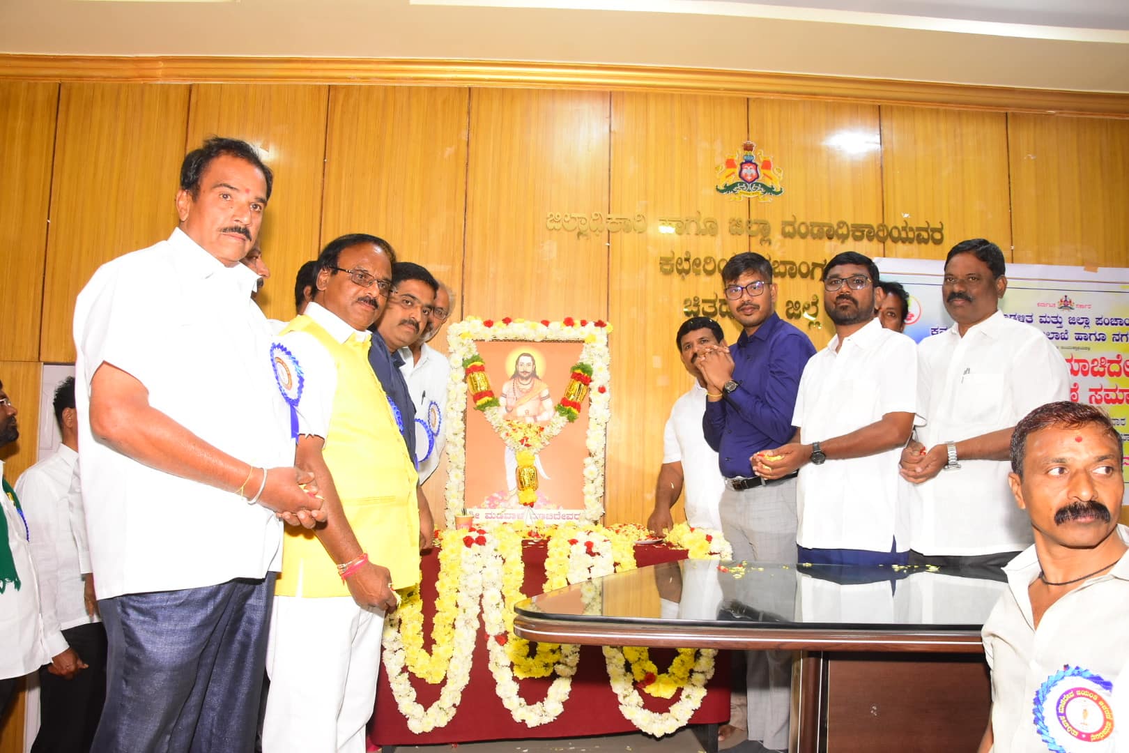 ಜಿಲ್ಲಾಧಿಕಾರಿ ಕಚೇರಿ ಸಭಾಂಗಣದಲ್ಲಿ ಭಾನುವಾರ ನಡೆದ ಮಡಿವಾಳ ಮಾಚಿದೇವರ ಜಯಂತಿ ಆಚರಣೆಯಲ್ಲಿ ಭಾವಚಿತ್ರಕ್ಕೆ ಪುಷ್ಪ ನಮನ ಸಲ್ಲಿಸಲಾಯಿತು.