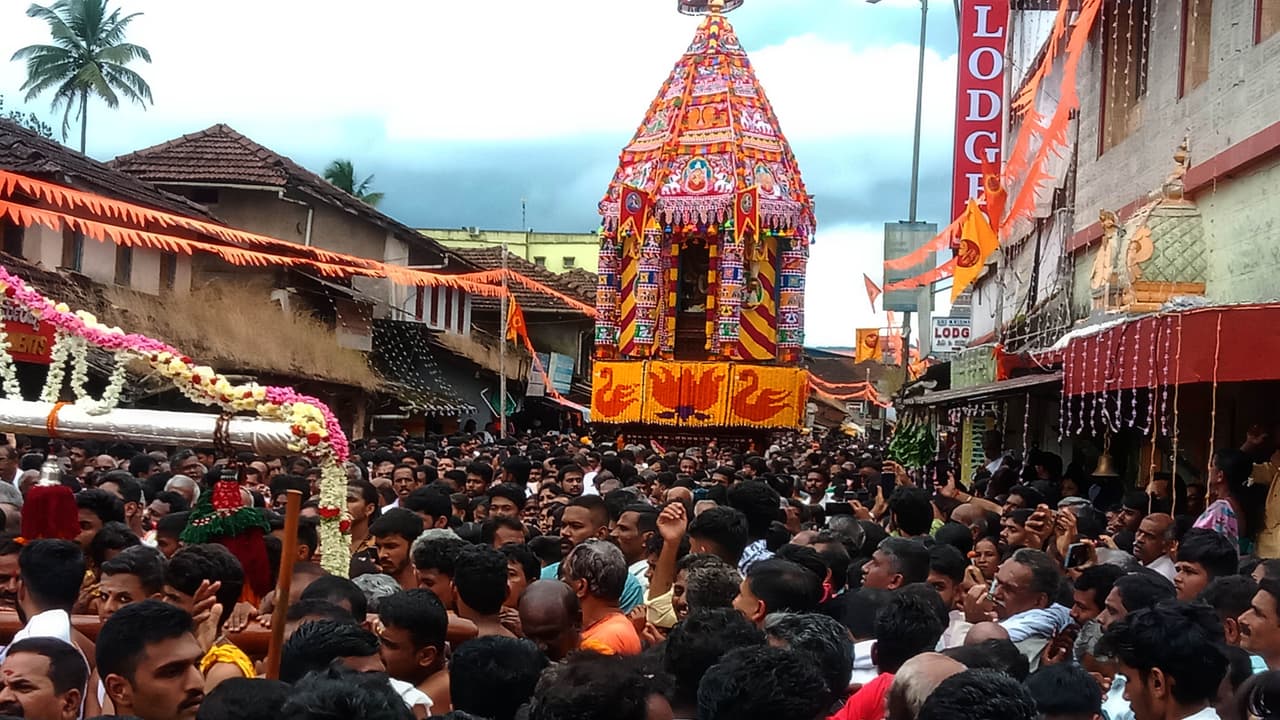 ಸಹ್ಯಾದ್ರಿ ಪರ್ವತಶ್ರೇಣಿ, ತುಂಗೆಯ ತಟದಲ್ಲಿರುವ ಮಹರ್ಷಿ ವಿಭಾಂಡಕ ಮನಿಗಳ ತಪೋಭೂಮಿಯಾಗಿರುವ ಶೃಂಗೇರಿ ದಕ್ಷಿಣಾಮ್ನಾಯ ಶ್ರೀ ಶಾರದಾ ಪೀಠದಲ್ಲಿ ನಡೆಯುತ್ತಿರುವ ಶರನ್ನವರಾತ್ರಿ ಮಹೋತ್ಸವದ ಹನ್ನೊಂದನೇ ದಿನವಾದ ಭಾನುವಾರ ಪಟ್ಟಣದಲ್ಲಿ ವೈಭವಯುತ ಶರನ್ನವರಾತ್ರಿಯ ಶ್ರೀ ಶಾರದಾಂಬಾ ಮಹಾರಥೋತ್ಸವ ನಡೆಯಿತು.