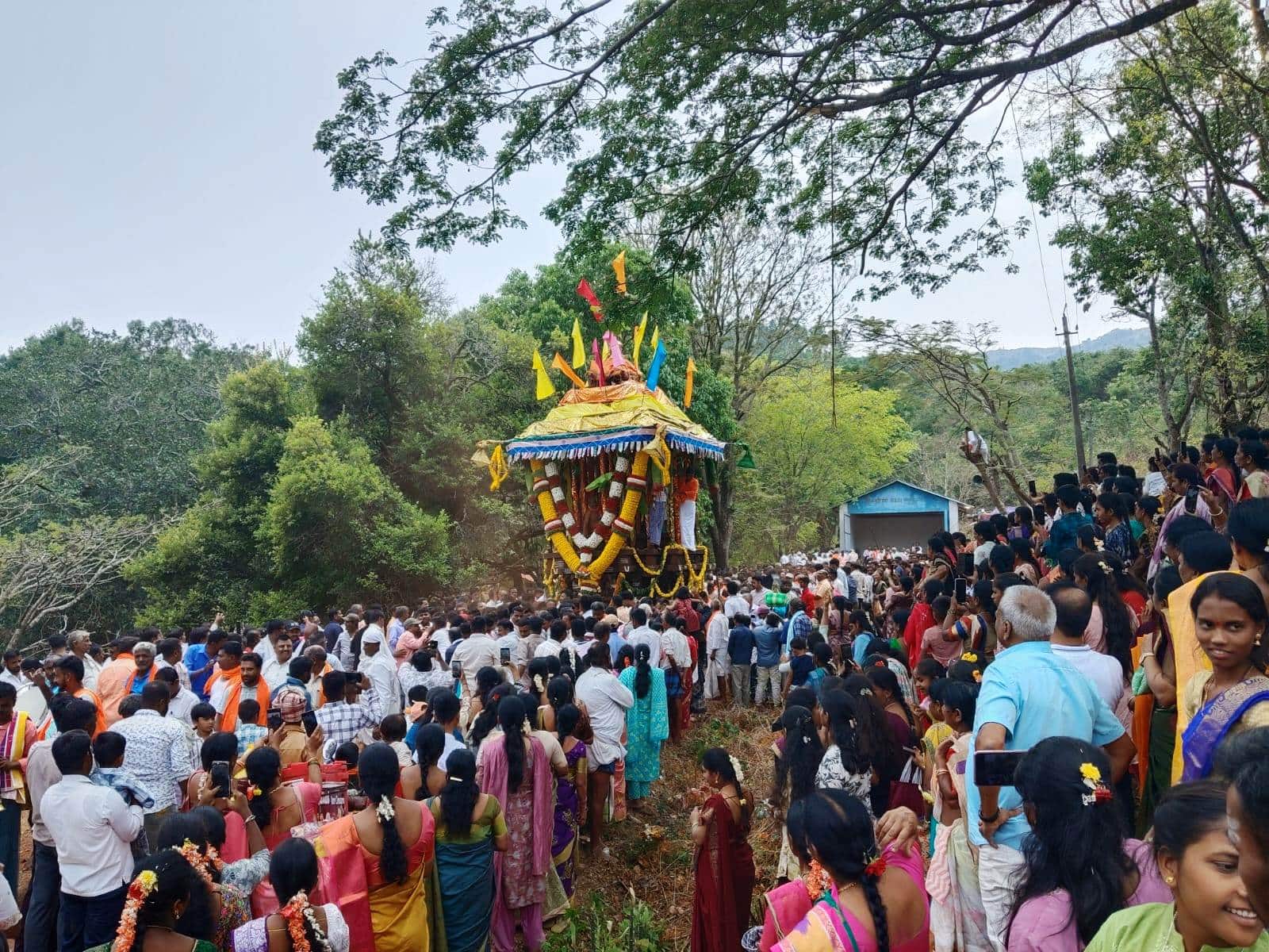 ರಥದ ದ್ವಜವನ್ನು ಒಕ್ಕಲುದಾರರಾದ ಹೋಗರೇಹಳ್ಳಿ ಸಿದ್ದಪ್ಪ ರವರು 1 ಲಕ್ಷ 50 ಸಾವಿರ ರು.ಗೆ ಕೂಗಿ ಪಡೆದು ಸ್ವಾಮಿಯವರ ಪ್ರಥಮ ಪೂಜೆಗೆ ಪಾತ್ರರಾದರು. ನಂತರ ಸಾವಿರಾರು ಭಕ್ತ ಸಮೂಹ ಜೈಕಾರಗಳೊಂದಿಗೆ ರಥವನ್ನು ಕೆಂಚರಾಯರ ಗುಡಿಯ ಬಳಿಯವರೆಗೂ ಎಳೆದು ತಂದರು.ಈ ಸಮಯದಲ್ಲಿ ಭಕ್ತರು ರಥಚಕ್ರಕ್ಕೆ ತೆಂಗಿನಕಾಯಿ ಒಡೆದು ಪೂಜೆಯನ್ನು ಸಲ್ಲಿಸಿ ಭಕ್ತಿ ಮೆರೆದರು. ತಮ್ಮ ಇಷ್ಟಾರ್ಥ ಸಿದ್ದಾರ್ಥಿಗಾಗಿ ಬಾಳೆಯ ಹಣ್ಣುಗಳನ್ನು ರಥದ ಕಳಸಕ್ಕೆ ಎಸೆಯುವುದರ ಮೂಲಕ ಹರಕೆಯನ್ನು ಸಲ್ಲಿಸಿದರು. ನಂತರದಲ್ಲಿ ಶ್ರೀವೀರಶೈವ ಭಕ್ತ ಮಂಡಳಿ ಭಕ್ತಾಧಿಗಳಿಂದ ಅನ್ನಸಂತರ್ಪಣೆಯನ್ನು ನೆರವೇರಿಸಲಾಯಿತು.