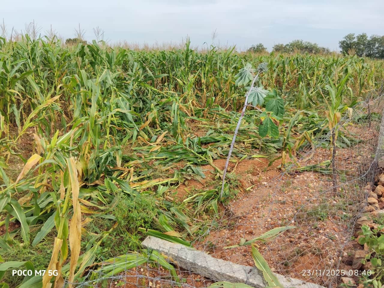 ತಾಲೂಕಿನ ಕೆವಿಎನ್ ದೊಡ್ಡಿ ಗ್ರಾಮದ ಕದಿರಯ್ಯ ಅವರ ಜಮೀನಿನಲ್ಲಿ ಮುಸುಕಿನ ಜೋಳದ ಫಸಲನ್ನು ಹಾಕಲಾಗಿದ್ದು, ಜಮೀನಿನ ಸುತ್ತಲೂ ಕಲ್ಲು ಕಂಬ ಮತ್ತು ಮೆಸ್ ಅಳವಡಿಸಲಾಗಿದೆ.