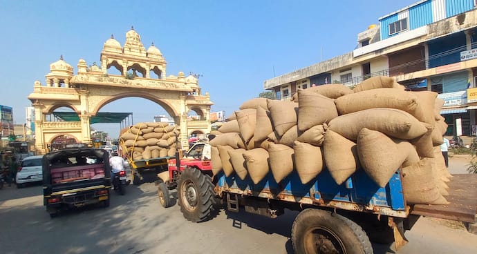 ಮಾರುಕಟ್ಟೆಯಲ್ಲಿ ಟ್ರಾಫಿಕ್ ಜಾಮ್ : ಜಿಲ್ಲೆಯಲ್ಲಿ ಈ ವರ್ಷ ಅತ್ಯಧಿಕ ಮೆಕ್ಕೆಜೋಳ ಬೆಳೆದಿದ್ದರೂ ಮಾರುಕಟ್ಟೆಯಲ್ಲಿ ನಿತ್ಯವೂ ನೂರಾರು ಟ್ರ್ಯಾಕ್ಟರ್, ಲಾರಿಗಳು ಬರುತ್ತಿರುವುದರಿಂದ ಕೊಪ್ಪಳ ಎಪಿಎಂಸಿ ಮಾರುಕಟ್ಟೆಯಲ್ಲಿ ಟ್ರಾಫಿಕ್ ಜಾಮ್ ಆಗುತ್ತಿದೆ. ವೇ ಬ್ರಿಡ್ಜ್ ಕಾಟಾ ಮಾಡಿಸಲು ದಿನಗಟ್ಟಲೇ ಸರದಿಯಲ್ಲಿ ನಿಲ್ಲಬೇಕಾದ ಅನಿವಾರ್ಯತೆ ರೈತರಿಗೆ ಎದುರಾಗಿದೆ. ಆದ್ದರಿಂದ ರೈತರು ಬೆಂಬಲ ಬೆಲೆ ಕೇಂದ್ರ ತೆರೆದು ಖರೀದಿ ಮಾಡುವಂತೆ ಆಗ್ರಹಿಸಿದ್ದಾರೆ.ಮೆಕ್ಕೆಜೋಳ ಬೆಲೆ ಮಾರುಕಟ್ಟೆಯಲ್ಲಿ ತೀವ್ರ ಕುಸಿದಿದೆ. ಹೀಗಾಗಿ, ಕೂಡಲೇ ಬೆಂಬಲ ಬೆಲೆ ಕೇಂದ್ರ ತೆರೆಯಬೇಕು ಎಂದು ಹಲವಾರು ಬಾರಿ ಮನವಿ ಮಾಡಿದ್ದೇವೆ. ಆದರೂ ಮನವಿಗೂ ಕ್ಯಾರೆ ಎನ್ನುತ್ತಿಲ್ಲವಾದ್ದರಿಂದ ಹೋರಾಟಕ್ಕೆ ಸಿದ್ಧತೆ ಮಾಡುತ್ತಿದ್ದೇವೆ ಎಂದು ಕರ್ನಾಟಕ ರಾಜ್ಯ ರೈತ ಸಂಘದ ಪ್ರಧಾನ ಕಾರ್ಯದರ್ಶಿ ನಜೀರಸಾಬ್ ಮೂಲಮನಿ ತಿಳಿಸಿದ್ದಾರೆ.
