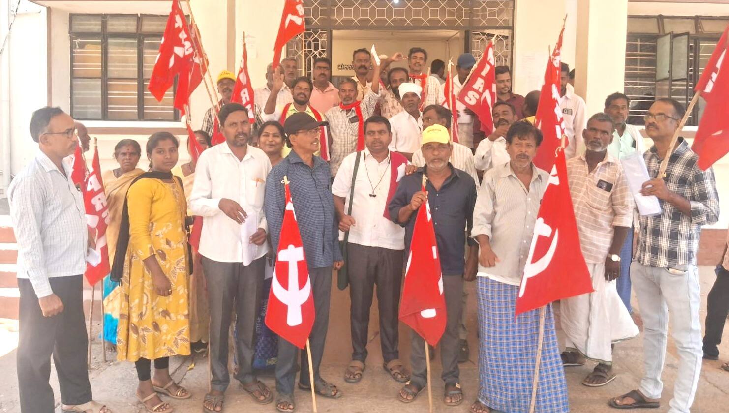 ತಾಲೂಕಿನ ಪಂಡಿತಹಳ್ಳಿ ನಾಡಕಚೇರಿಗೆ ಕಾಯಂ ಕಂಪ್ಯೂಟರ್ ಆಪರೇಟರ್ ನೇಮಕ ಸೇರಿ ಹಲವು ಸಮಸ್ಯೆಗಳ ಪರಿಹಾರಕ್ಕೆ ಆಗ್ರಹಿಸಿ ಕರ್ನಾಟಕ ಪ್ರಾಂತ ರೈತ ಸಂಘದ ಸದಸ್ಯರು ಪಟ್ಟಣದಲ್ಲಿ ಪ್ರತಿಭಟನೆ ನಡೆಸಿದರು.ಪಟ್ಟಣದ ತಾಲೂಕು ಕಚೇರಿ ಮುಂಭಾಗ ಜಿಲ್ಲಾ ಸಂಚಾಲಕ ಎನ್.ಎಲ್.ಭರತ್ ರಾಜ್ ನೇತೃತ್ವದಲ್ಲಿ ಸೇರಿದ ಸದಸ್ಯರು ನಾಡ ಕಚೇರಿಯಲ್ಲಿ ಇರುವ ನ್ಯೂನತೆಗಳನ್ನು ಕೂಡಲೇ ಸರಿಪಡಿಸುವಂತೆ ಒತ್ತಾಯಿಸಿ ಅಧಿಕಾರಿಗಳ ವಿರುದ್ಧ ಧಿಕ್ಕಾರ ಕೂಗಿ ಆಕ್ರೋಶ ವ್ಯಕ್ತಪಡಿಸಿದರು.