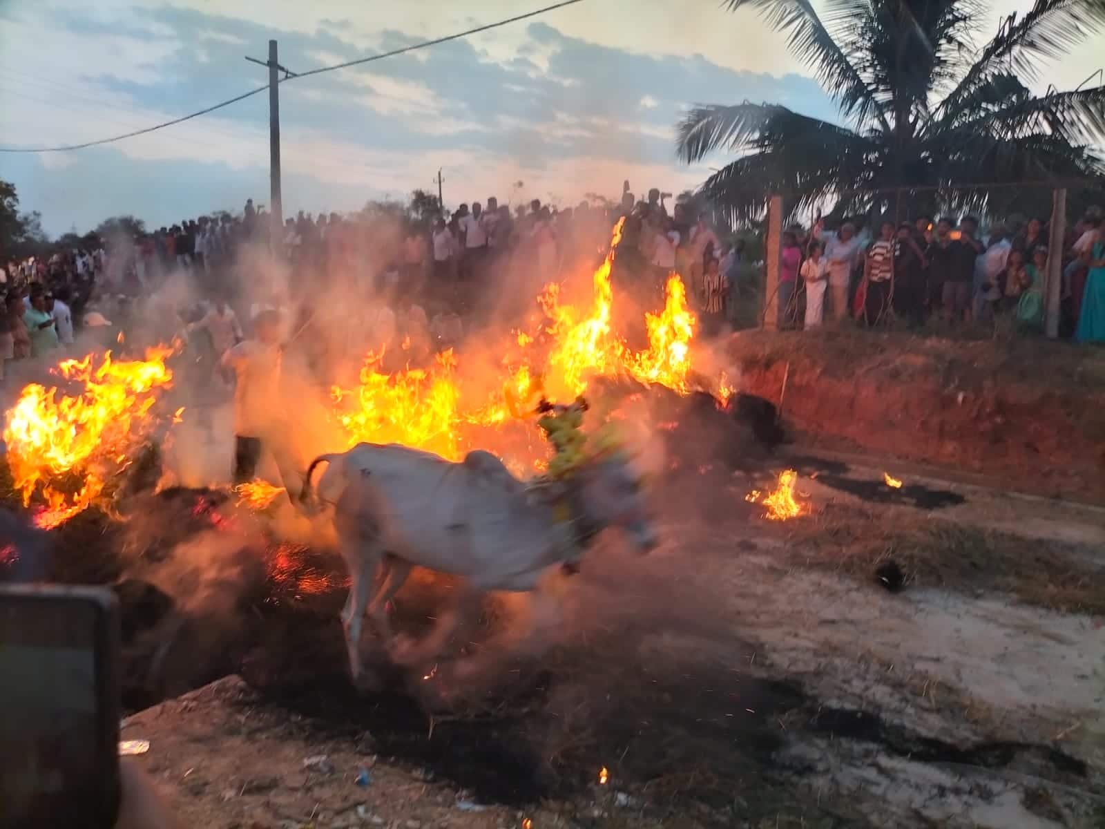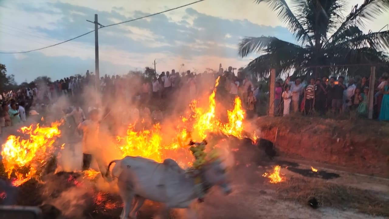 ಜಾನುವಾರುಗಳನ್ನು ಬೆಂಕಿಯ ಮೂಲಕ ಹಾಯಿಸುವ ಸಂಭ್ರಮ ಎಲ್ಲೆಡೆ ಮನೆ ಮಾಡಿತ್ತು. ಗ್ರಾಮೀಣ ಪ್ರದೇಶದಲ್ಲಿನ ಹಬ್ಬವನ್ನು ಅತ್ಯಂತ ಉತ್ಸಾಹದಿಂದ ಆಚರಿಸಲಾಯಿತು. ಮಹಿಳೆಯರು ಹಾಗೂ ಮಕ್ಕಳು ಹೊಸ ಬಟ್ಟೆ ತೊಟ್ಟು ಮನೆ ಮನೆಗಳಿಗೆ ತೆರಳಿ ಎಳ್ಳು, ಬೆಲ್ಲ, ಕೊಬ್ಬರಿ, ಕಬ್ಬು ನೀಡಿ ಆಚರಣೆ ಮಾಡಿದರು.