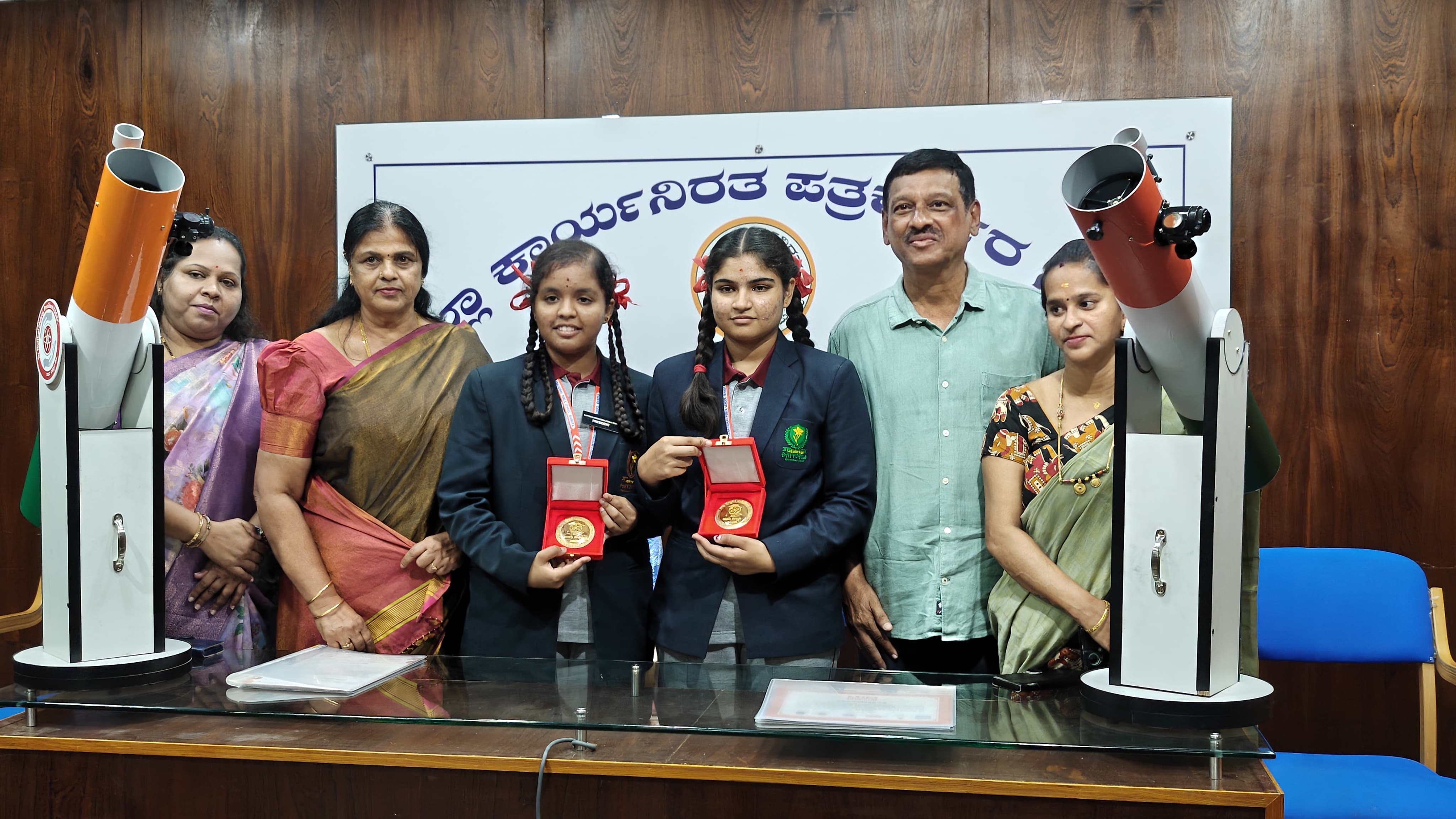 ವಿಎಲ್ಎನ್ ಎಜುಕೇಷನ್ ಟ್ರಸ್ಟ್, ಡ್ಯಾಫೋಡಿಲ್ಸ್ ಶಾಲೆಯ ವಿದ್ಯಾರ್ಥಿಗಳಾದ ತ್ರಿಷಾ ಪಿ.ಗೌಡ ಹಾಗೂ ಎಚ್.ವಿ.ಕುಮುದಾ ರಾಜ್ಯ ಮಟ್ಟದ ಪ್ರಥಮ ಟೆಲಿಸ್ಕೋಪ್ ತರಬೇತಿ ಶಿಬಿರದಲ್ಲಿ ಸ್ಥಳದಲ್ಲೇ ಟೆಲಿಸ್ಕೋಪ್ ತಯಾರಿಸಿ ಹಲವು ದಾಖಲೆಗಳಿಗೆ ಪಾತ್ರರಾಗಿದ್ದಾರೆ ಎಂದು ಟ್ರಸ್ಟ್ನ ಕಾರ್ಯದರ್ಶಿ ಸುಜಾತ ಕೃಷ್ಣ ತಿಳಿಸಿದರು.ಅ.1ರಿಂದ 9ರವರೆಗೆ ವಿಜ್ಞಾನ ಮತ್ತು ತಂತ್ರಜ್ಞಾನ ಇಲಾಖೆ, ಶಾಲಾ ಶಿಕ್ಷಣ ಇಲಾಖೆ, ಕರ್ನಾಟಕ ಸರ್ಕಾರ, ಇಸ್ರೋ, ಕರ್ನಾಟಕ ರಾಜ್ಯ ವೈಜ್ಞಾನಿಕ ಸಂಶೋಧನಾ ಪರಿಷತ್ತಿನ ಸಹಯೋಗದಲ್ಲಿ ದೊಡ್ಡಬಳ್ಳಾಪುರದಲ್ಲಿ ನಡೆದ `ನಾನೂ ವಿಜ್ಞಾನಿ-2025’ ಶಿಬಿರದ ಮೂಲಕ ಈ ಸಾಧನೆ ಮಾಡಿ ಜಿಲ್ಲೆಗೆ ಕೀರ್ತಿ ತಂದಿದ್ದಾರೆ ಎಂದು ಸುದ್ದಿಗೋಷ್ಠಿಯಲ್ಲಿ ಮೆಚ್ಚುಗೆ ವ್ಯಕ್ತಪಡಿಸಿದರು.