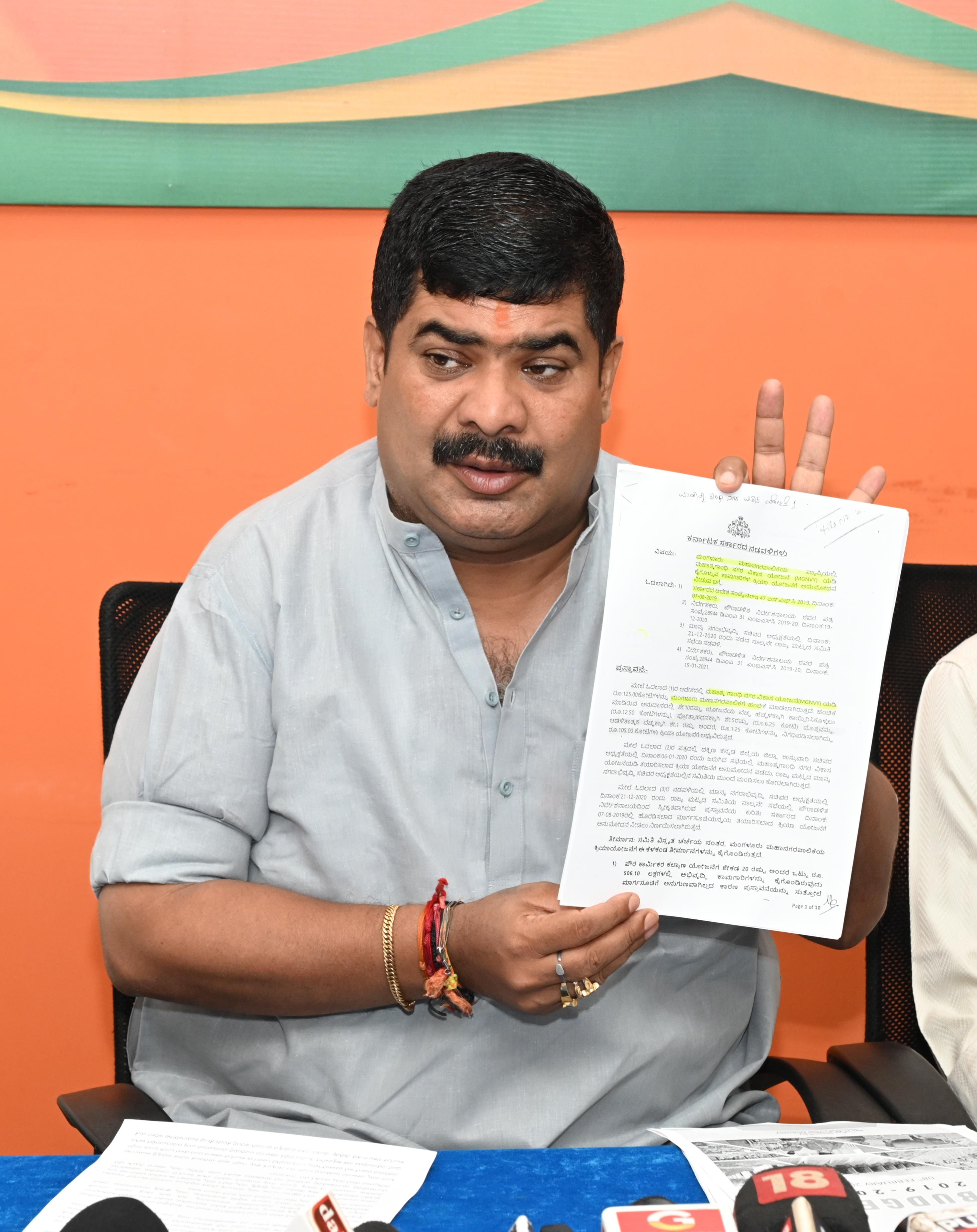 ನಗರದ ಅಟಲ್ ಸೇವಾ ಕೇಂದ್ರದಲ್ಲಿ ಶುಕ್ರವಾರ ಸುದ್ದಿಗೋಷ್ಠಿಯಲ್ಲಿ ಮಾತನಾಡಿದ ಅವರು, ಹಿಂದಿನ ಸರ್ಕಾರದ ಅವಧಿಯಲ್ಲಿ ಮಹಾತ್ಮಗಾಂಧಿ ನಗರ ವಿಕಾಸ ಯೋಜನೆ-1ಕ್ಕೆ 165 ಕೋಟಿ ರು. ಘೋಷಣೆಯಾಗಿತ್ತು. ಆದರೆ ನಂತರ ಅಧಿಕಾರಕ್ಕೆ ಬಂದ ಕಾಂಗ್ರೆಸ್ ಸರ್ಕಾರ ಮಂಗಳೂರು ಸಹಿತ ಎಲ್ಲ ಮಹಾನಗರ ಪಾಲಿಕೆಗಳಿಗೆ ಬಿಡುಗಡೆಯಾದ ಅನುದಾನಗಳಿಗೆ ತಡೆ ನೀಡಿತು. ಈಗ ಯೋಜನೆಯ ಹೆಸರಿನ ಮುಂದೆ 2.0 ಸೇರಿಸಿ ನಮ್ಮ ಕಾಂಗ್ರೆಸ್ ಸರ್ಕಾರ ಅಭಿವೃದ್ಧಿಗೆ ಅನುದಾನ ನೀಡುತ್ತಿದೆ ಎಂದು ಅಲ್ಲಲ್ಲಿ ಬ್ಯಾನರ್ ಹಾಕಿ ಜನರ ದಾರಿ ತಪ್ಪಿಸುವ ಕೆಲಸ ಮಾಡಲಾಗುತ್ತಿದೆ. ಅದೇ ಯೋಜನೆ, ಅದೇ ಅನುದಾನ. ಹೆಸರು ಮಾತ್ರ ಬದಲಾವಣೆ ಅಷ್ಟೇ ಎಂದು ವ್ಯಂಗ್ಯವಾಡಿದರು.ಶ್ವೇತಪತ್ರ ಹೊರಡಿಸಲಿ: ಅಭಿವೃದ್ಧಿ ವಿಚಾರದಲ್ಲಿ ಯಾರೂ ರಾಜಕಾರಣ ಮಾಡಬಾರದು ಎಂದು ಚರ್ಚೆ ಆರಂಭಿಸಿರುವ ಜಿಲ್ಲೆಯ ಕೆಲವು ಕಾಂಗ್ರೆಸ್ ಮುಖಂಡರು ಸ್ವತಃ ತಾವೇ ಅದನ್ನು ಪಾಲಿಸುತ್ತಿದ್ದಾರಾ ಎಂಬುವುದನ್ನು ಆತ್ಮವಿಮರ್ಶೆ ಮಾಡಿಕೊಳ್ಳಬೇಕಾಗಿದೆಕ್ಷೇತ್ರದ ಅಭಿವೃದ್ಧಿಗಾಗಿ ಹಿಂದಿನ ಬಿಜೆಪಿ ಸರ್ಕಾರದ ಅವಧಿಯಲ್ಲಿ ಸಾವಿರಾರು ಕೋಟಿ ರು. ಅನುದಾನಗಳನ್ನು ತಂದಿದ್ದೇನೆ. ಇದಕ್ಕೆ ಪೂರಕವಾದ ದಾಖಲೆಗಳನ್ನು ನೀಡಲು ನಾನು ತಯಾರಿದ್ದೇನೆ. ಆದರೆ ಕಳೆದ ಮೂರು ವರ್ಷಗಳ ಅವಧಿಯಲ್ಲಿ ಎಷ್ಟು ಅನುದಾನಗಳು ಬಂದು ಯಾವ ಕಾಮಗಾರಿ ಅನುಷ್ಠಾನಗೊಂಡಿದೆ ಎಂಬುದರ ಬಗ್ಗೆ ಕಾಂಗ್ರೆಸ್ ನಾಯಕರು ಶ್ವೇತಪತ್ರ ಬಿಡುಗಡೆ ಮಾಡಲಿ ಎಂದು ಅವರು ಸವಾಲೆಸೆದರು.ಶಾಸಕರಿಗೆ ಅನುದಾನದಲ್ಲಿ ತಾರತಮ್ಯ: ಕಾಂಗ್ರೆಸ್ ಶಾಸಕರಿಗೆ 50 ಕೋಟಿ ರೂ. ವಿಶೇಷ ಅನುದಾನ, ಬಿಜೆಪಿ-ಜೆಡಿಎಸ್ ಶಾಸಕರಿಗೆ 25 ಕೋಟಿ ರು. ನೀಡಿದ್ದೇವೆ ಎಂದು ಹೇಳುತ್ತಾರೆ. ಆದರೆ ಈವರೆಗೆ ಯಾವುದೇ ಅನುಷ್ಠಾನ ಪ್ರಕ್ರಿಯೆ ಆಗಿಲ್ಲ. ಬಜೆಟ್ನಲ್ಲಿ ಅನುದಾನ ಮೀಸಲಿಡುವ ಬಗ್ಗೆ ವಿಧಾನಸಭಾ ಸ್ಪೀಕರ್ ಹಾಗೂ ಜಿಲ್ಲಾ ಉಸ್ತುವಾರಿ ಸಚಿವರ ಸಹಿತ ಕಾಂಗ್ರೆಸ್ ನಾಯಕರು, ಅಧಿಕಾರಿಗಳು ಬೆಂಗಳೂರಿನಲ್ಲಿ, ಮಂಗಳೂರಿನಲ್ಲಿ ಮ್ಯಾರಥಾನ್ ಸಭೆ ನಡೆಸಿದರೂ ಬಜೆಟ್ ಘೋಷಣೆ ವೇಳೆ ನಯಾಪೈಸೆ ಅನುದಾನ ಬಂದಿಲ್ಲ ಎಂದರು.ಸುಮಾರು 4 ಕೋಟಿ ರು. ವೆಚ್ಚದಲ್ಲಿ ರಾಜಕಾಲುವೆಗಳ ಹೂಳೆತ್ತುತ್ತಿದ್ದೇವೆ ಎಂದು ಭಾರೀ ಹುಮ್ಮಸ್ಸಿನಿಂದ ಹೇಳಿಕೆ ಕೊಡುವ ಕಾಂಗ್ರೆಸ್ ನಾಯಕರಿಗೆ, ಅದು ಪ್ರತೀ ವರ್ಷವೂ ನಡೆದೇ ನಡೆಯುತ್ತದೆ ಎಂಬುದರ ಅರಿವಿಲ್ಲವೇ? ಅದು ಮಹಾನಗರ ಪಾಲಿಕೆಯ ಅನುದಾನ. ಇಲ್ಲಿನ ಜನರ ತೆರಿಗೆಯ ಹಣ. ಇದನ್ನೂ ಸಹ ನಮ್ಮ ಸರ್ಕಾರದ ಸಾಧನೆ ಎನ್ನುವುದಾ? ನಾಳೆ ಇವರು ನಮ್ಮ ಸರ್ಕಾರ ನೀರು ಕೊಟ್ಟಿದೆ, ರಸ್ತೆ ಗುಂಡಿ ಮುಚ್ಚಿದೆ ಎಂದು ಹೇಳಿದರೂ ಆಶ್ಚರ್ಯವಿಲ್ಲ. 10 ಕೋಟಿ ರು. ಮಳೆ ಹಾನಿಯ ಪರಿಹಾರ ಹಿಂದಿನ ಬಿಜೆಪಿ ಸರ್ಕಾರ ಇದ್ದಾಗಲೂ ಇತ್ತು. ಇದು ಕ್ಷೇತ್ರದ ಶಾಸಕರಿಗೆ ಬರುವ ಅನುದಾನವಾಗಿದ್ದು, ಕಾಂಗ್ರೆಸ್ ನಾಯಕರು ನಮ್ಮ ಸರ್ಕಾರದ ವಿಶೇಷ ಸಾಧನೆ ಎಂದು ಬಿಂಬಿಸುವುದರಲ್ಲಿ ಅರ್ಥವಿಲ್ಲ ಎಂದರು.